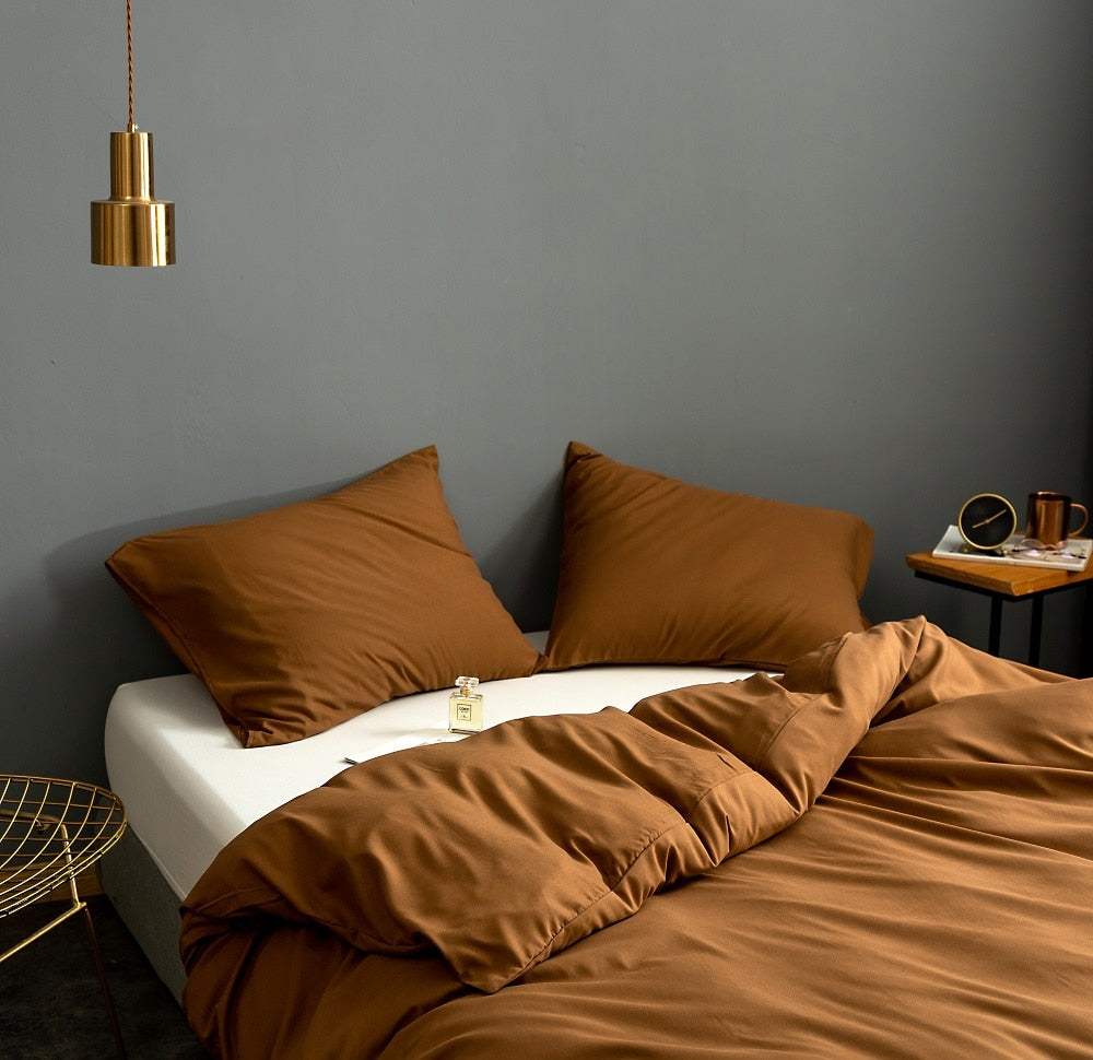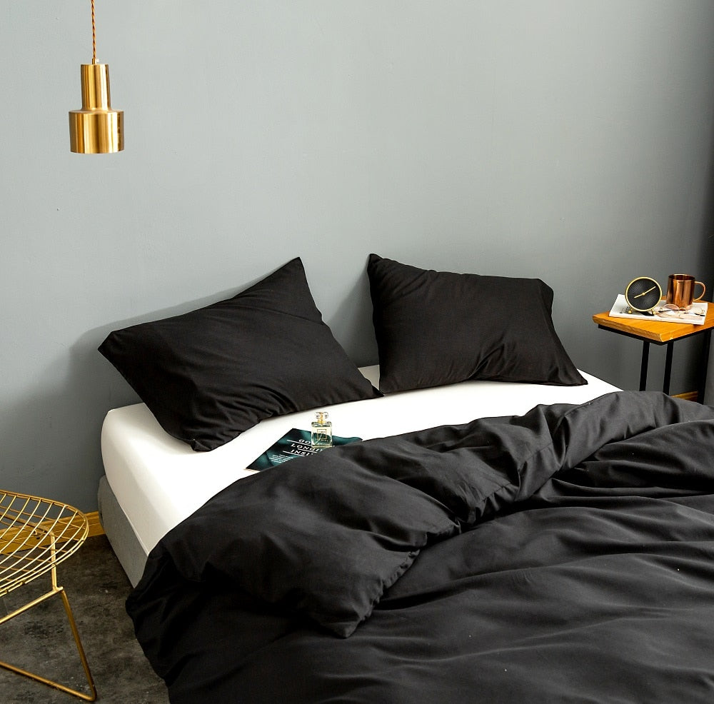 Yeknu Home Textile Solid Color Duvetcover&2pcs Pillowcase Bed Quilt Cover Bedding Linens Set King 104*90 Inch Queen 90*90 Inch