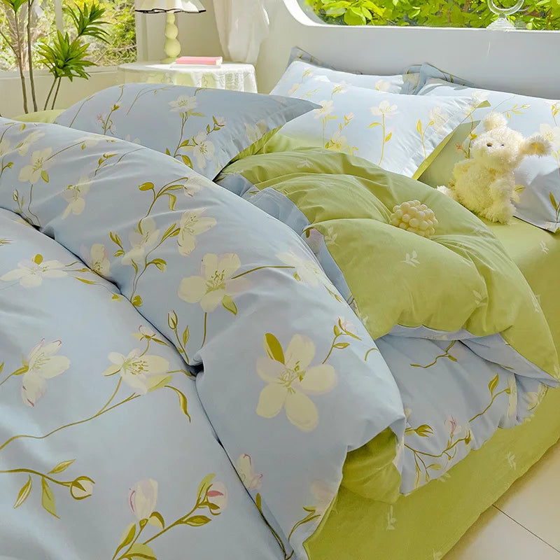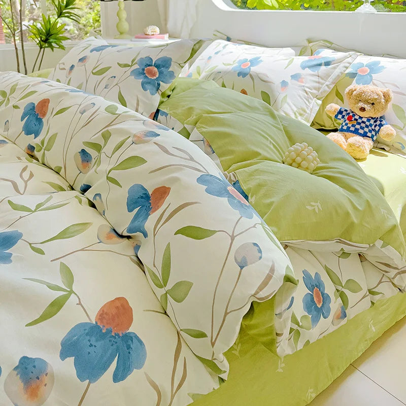 Yeknu Hot Flora Style 100% Cotton Bedding Set Printed Four Piece Set Pure Cotton Bed Sheet Set Duvet Cover Queen King Size