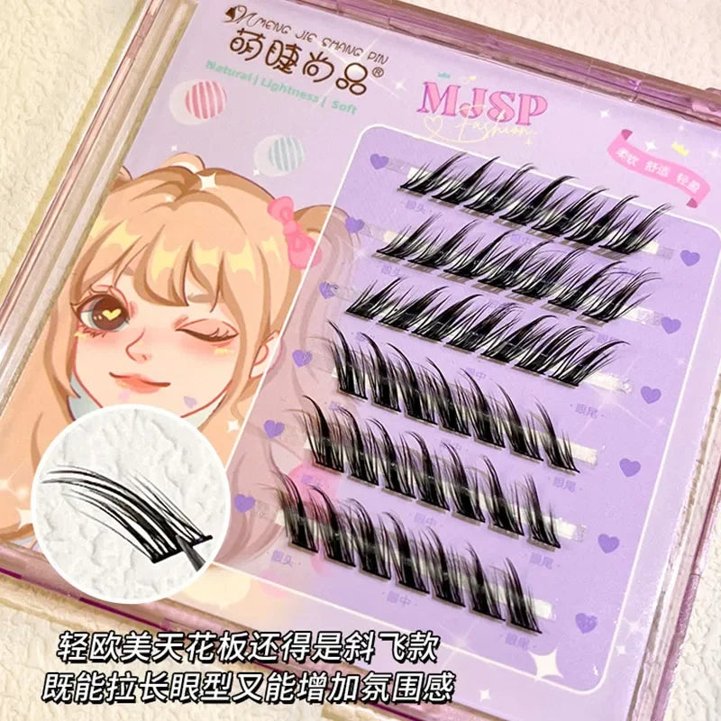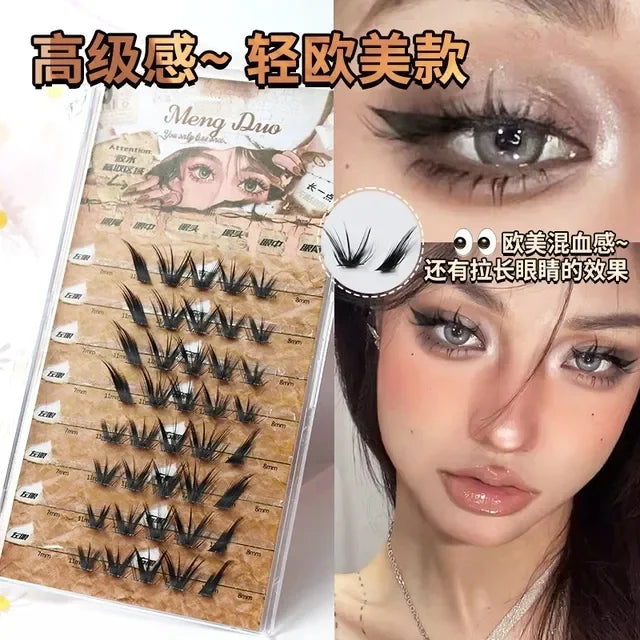 Yeknu Hybri Flying Fox False Eyelashes Single Cluster Hybrid Extension Segmented Natural Fox Eye Effect Individual Lashes Makeup Tool