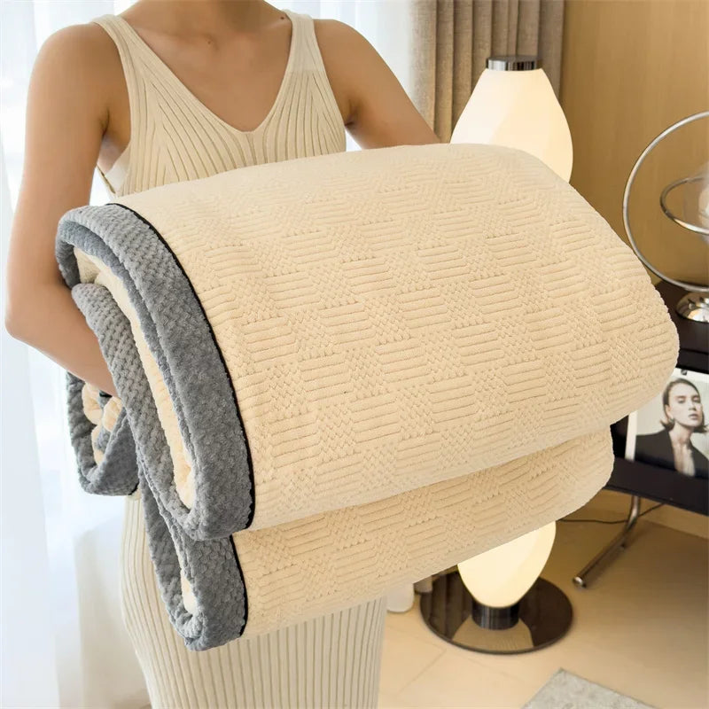 Yeknu IEncrypted Carved Velvet Autumn Winter Warm Sofa Blanket Soft Comfortable Warmth Bed Blankets Throw Fluffy Breathable Bed Sheets