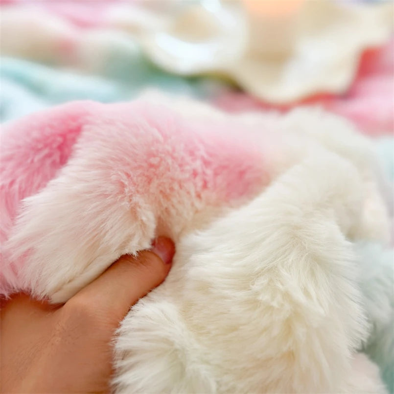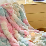 Yeknu Imitation Rabbit Hair Light Luxury Solid Color Fleece Blanket Thickened Warm Nordic Nap Casual Blanket Soft Shawl Blanket