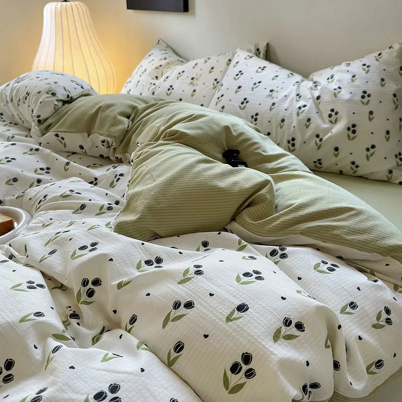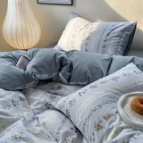 Yeknu Ins Bedding Set Duvet Cover Fresh Blue Floral. Wrinkled Yann Bed Set Of Four Pieces, Washing Cotton Sheets Bed Sheets