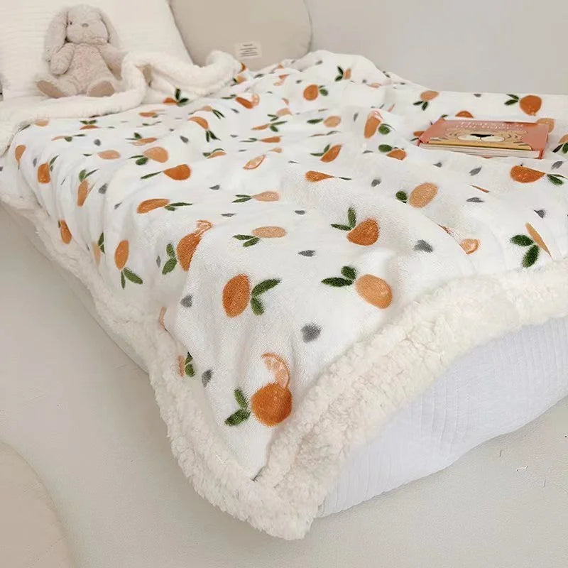 Yeknu Ins Floral Flower Winter Blanket Thickened Milk Velvet Cover Blanket Shawl Cover Leg Plush Coral Lamb Blanket Office Nap Blanket