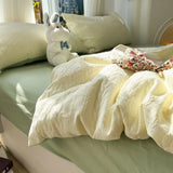 Yeknu INS jacquard Wheat Grain Bedding Set Solid Color Duvet Cover Pillow Case Sheet Adults Girls Washed Cotton Bed Linen King Queen