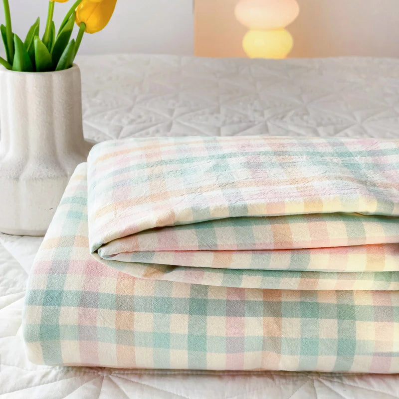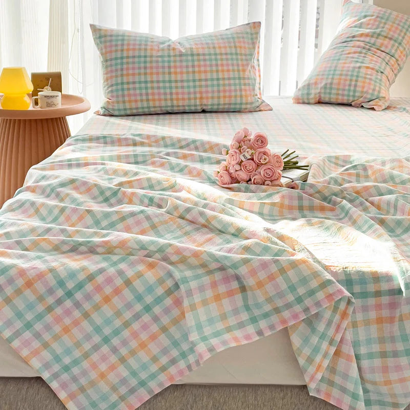 Yeknu INS Lattice Grid Sheet Set and Pillowcases Soft Polyester Sheet Skin-friendly Bed Cover Twin Queen Full Size Bedspread 3pcs