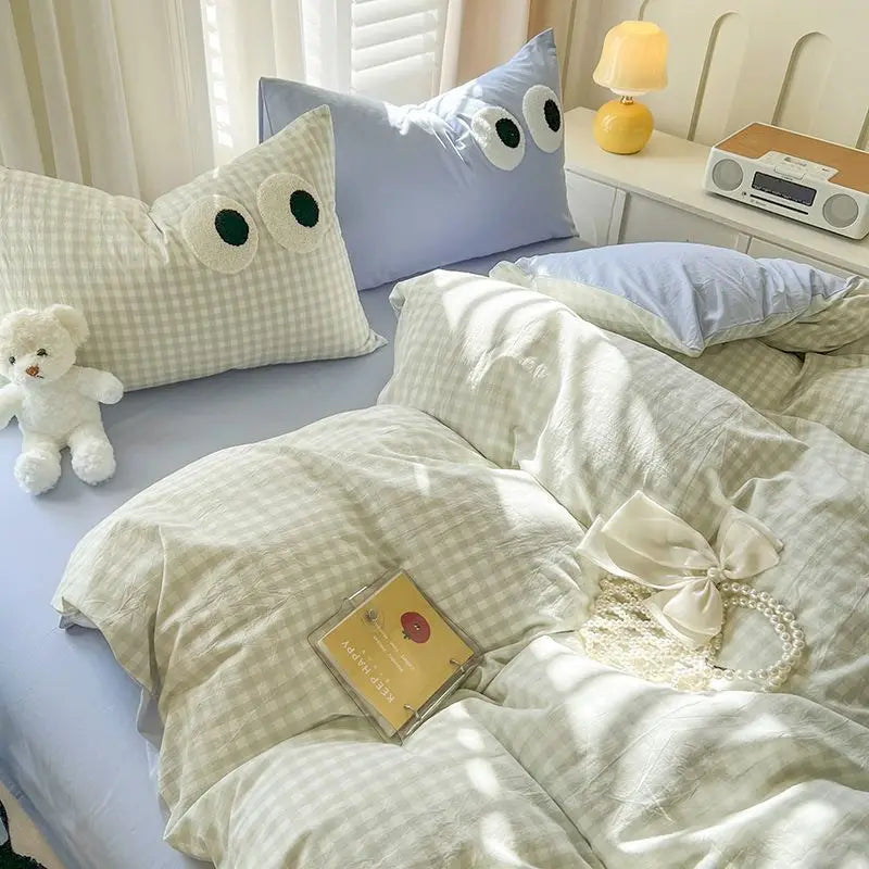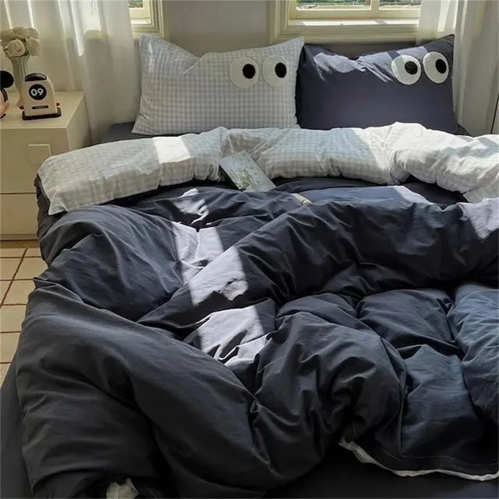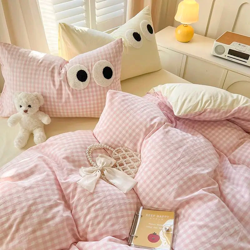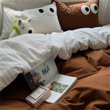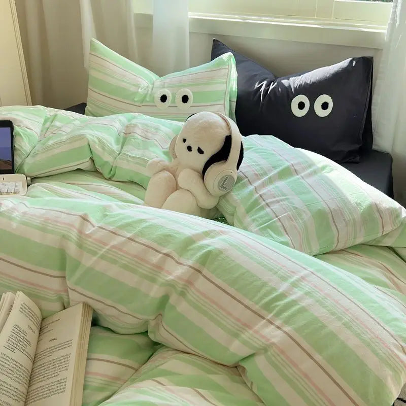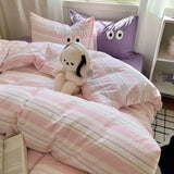 Yeknu INS Striped Bedding Set Simple Soft Duvet Cover Sheet Pillowcase Solid Color Bed Linens for Adults Girls Twin Queen Size