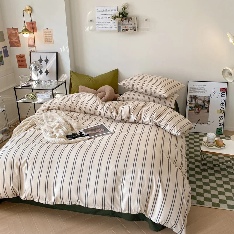 Yeknu Ins Stripes Bedding Set with Pillowcase bed sheet Single Full Size Bed Linen Duvet Cover Set Queen/King Double Comforter Cover