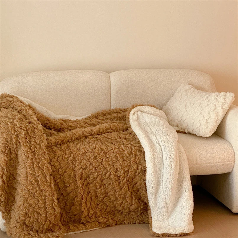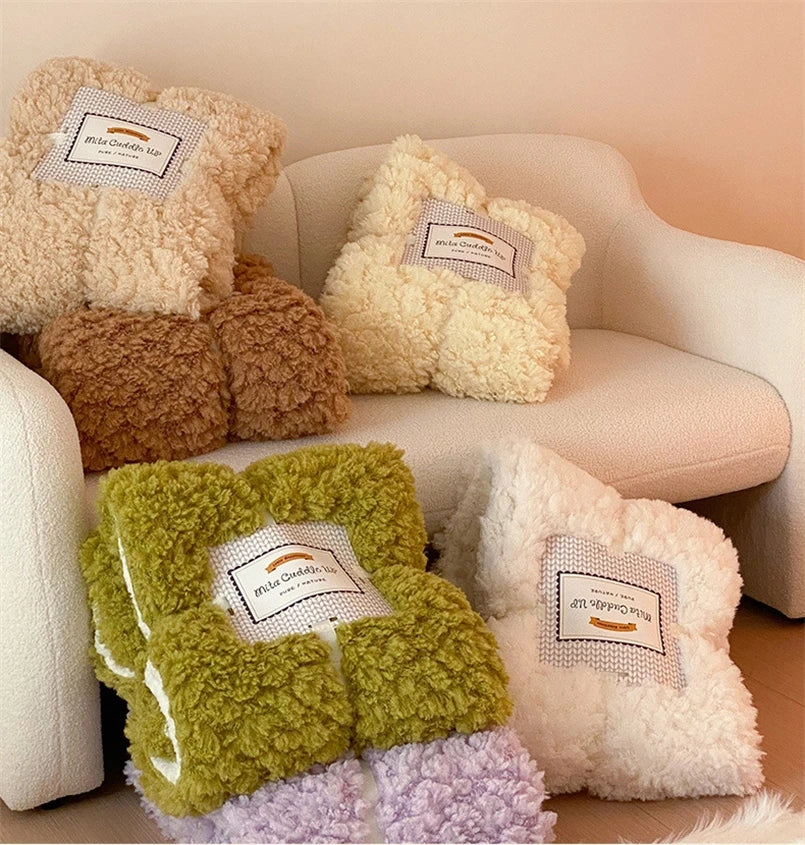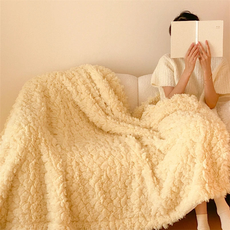Yeknu Ins Style Modern Simple Puff Velvet Blanket Light Luxury Autumn and Winter Sofa Blanket Thickened Warm Lamb Velvet Blanket