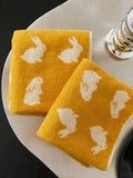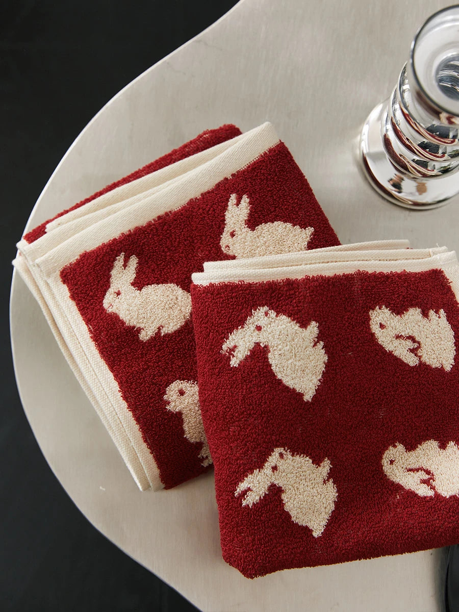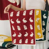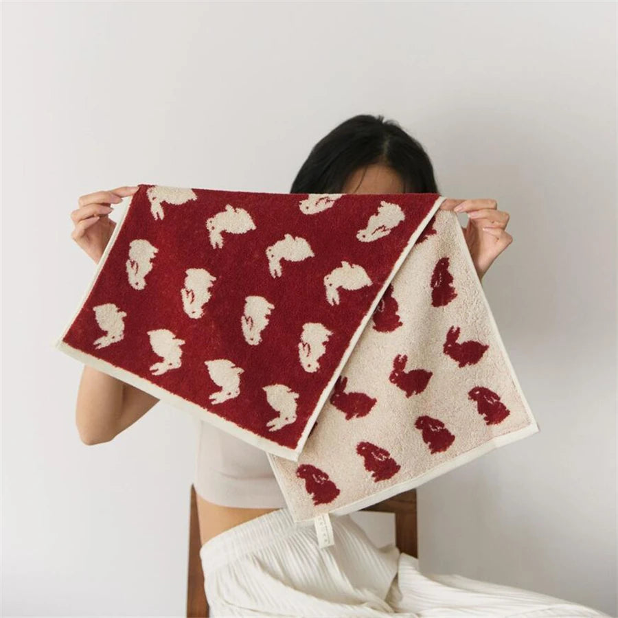 Yeknu Ins Style Rabbits Patter Cotton Towel Soft Knitted Yarn-Dyed Jacquard Face Towel Absorbent Skin-friendly Towel