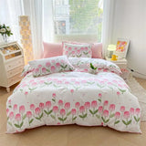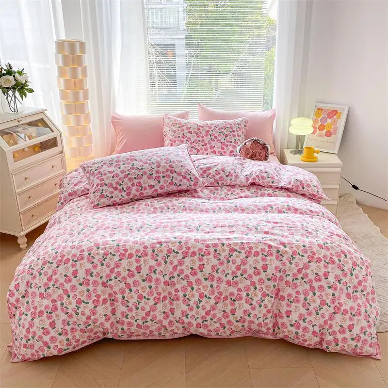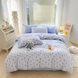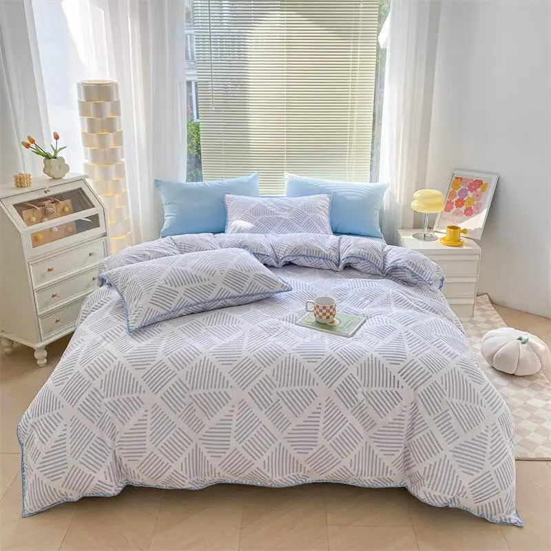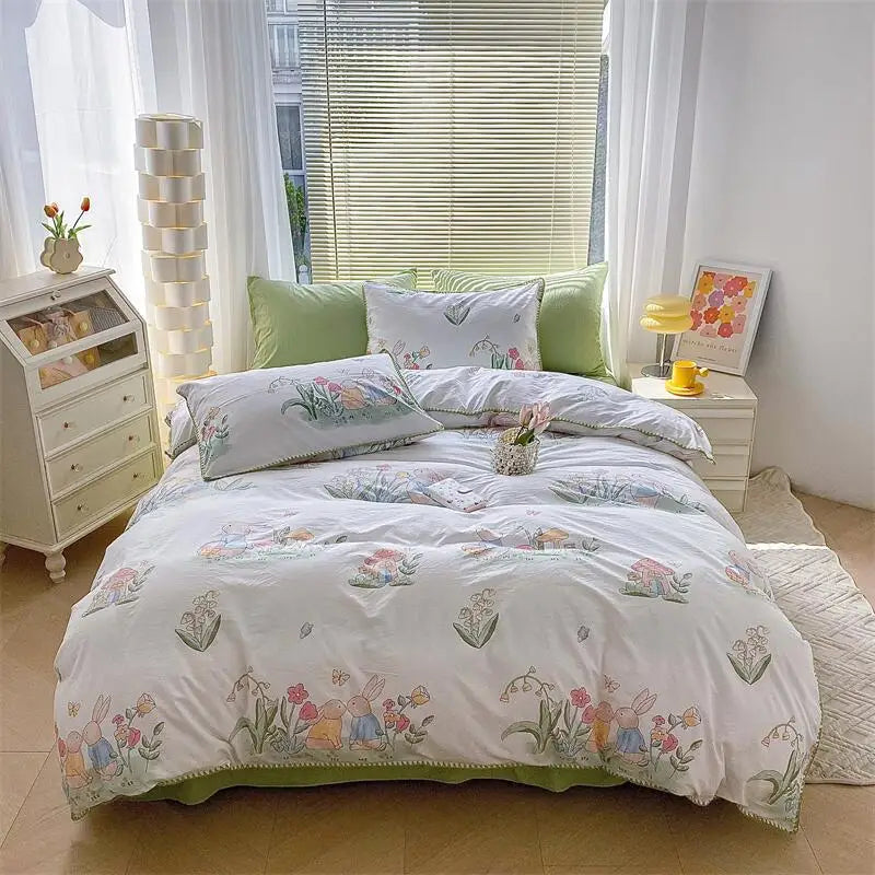 Yeknu Ins Washed Double-Layer Yarn Shell Embroidery Four-Piece Bed Fitted Sheet