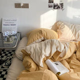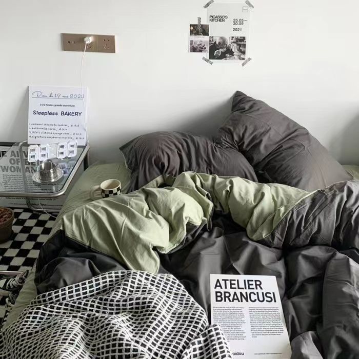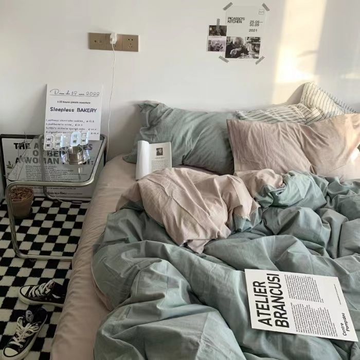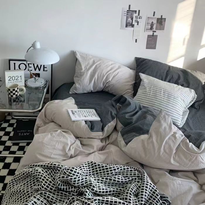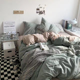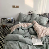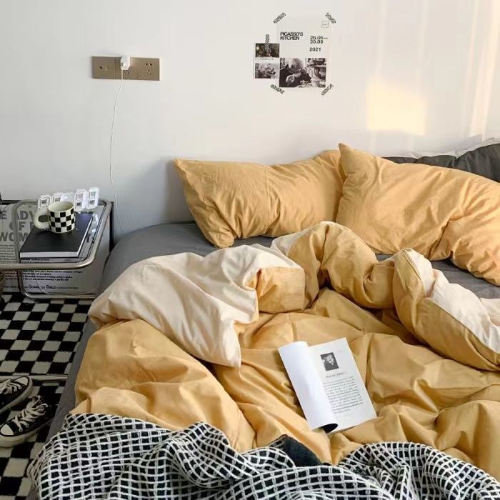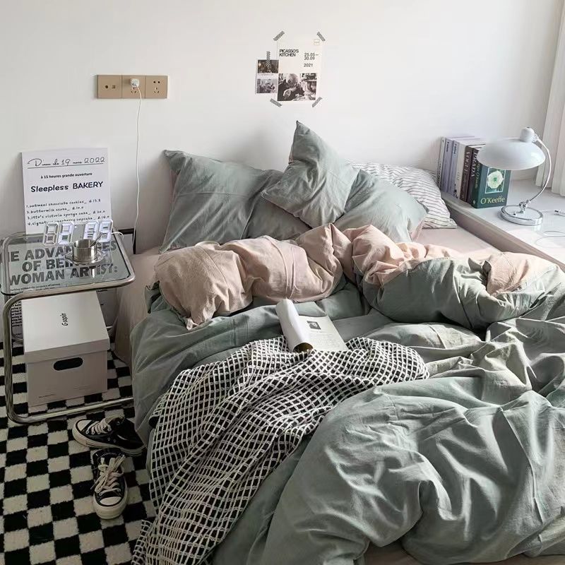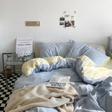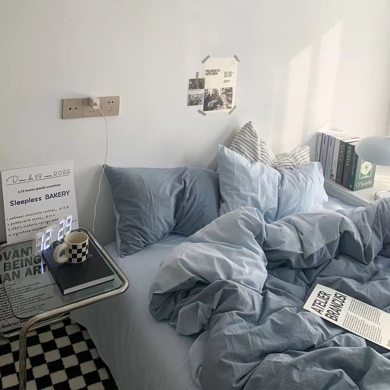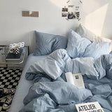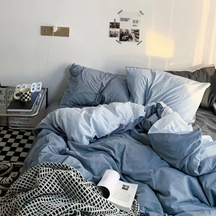 Yeknu Ins Wind Haze Blue Literary Simple Double Spell Washed Cotton Bed Four-piece Set Dormitory Three-piece Bed Sheet Three-piece Set