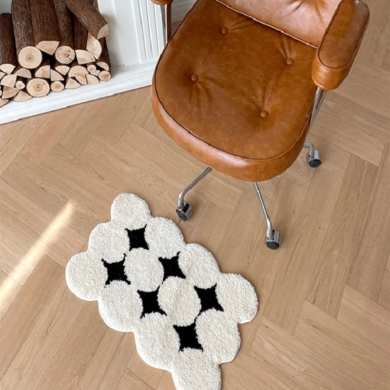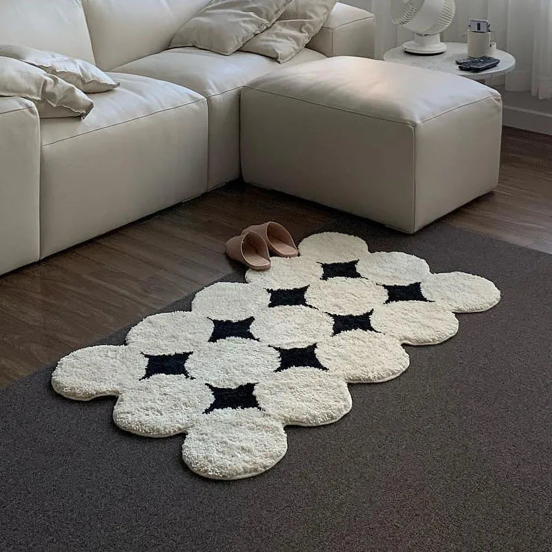 Yeknu Ins Wind Tufted Flocking Carpet Living Room Lrregular Absorbent Non-slip Floor Mat Creative Cream Circle Bedroom Bedside Blanket
