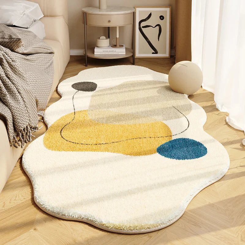 Yeknu Irregular Shape Bedside Plush Rug Fluffy Soft Bedroom Decor Carpet Retro Cream Carpets for Living Room Washable Thick Lounge Mat