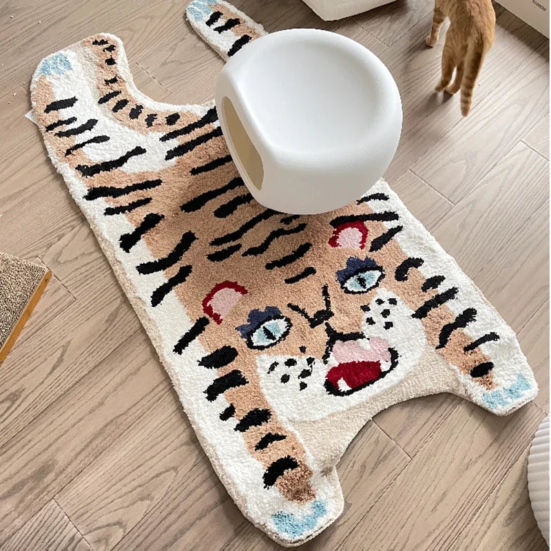 Yeknu Irregular Tiger Pattern Living Room Carpet Cute Leopard Print Children's Bedroom Rug Aesthetics Rugs тигр ковер 호랑이 양탄자 Tapis IG