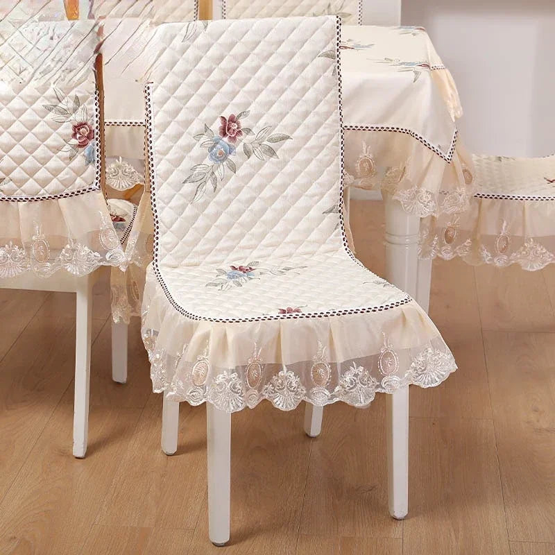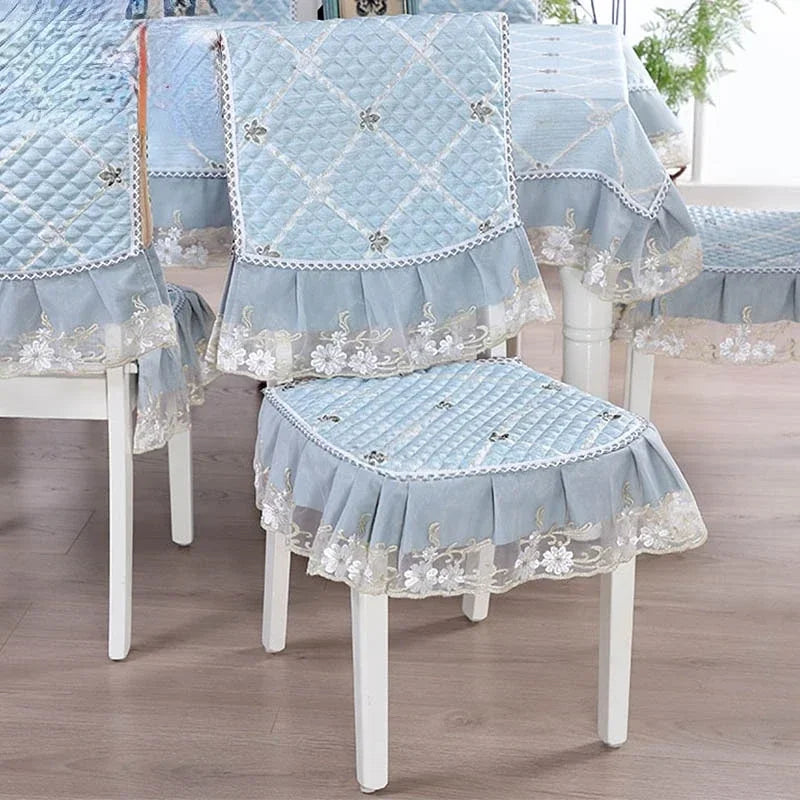 Yeknu Jacquard Pattern Dining Chair Cover Antiskid Exquisite Edging Lace Seat Cushion Decorative Integrated Household Use 4 Seasons