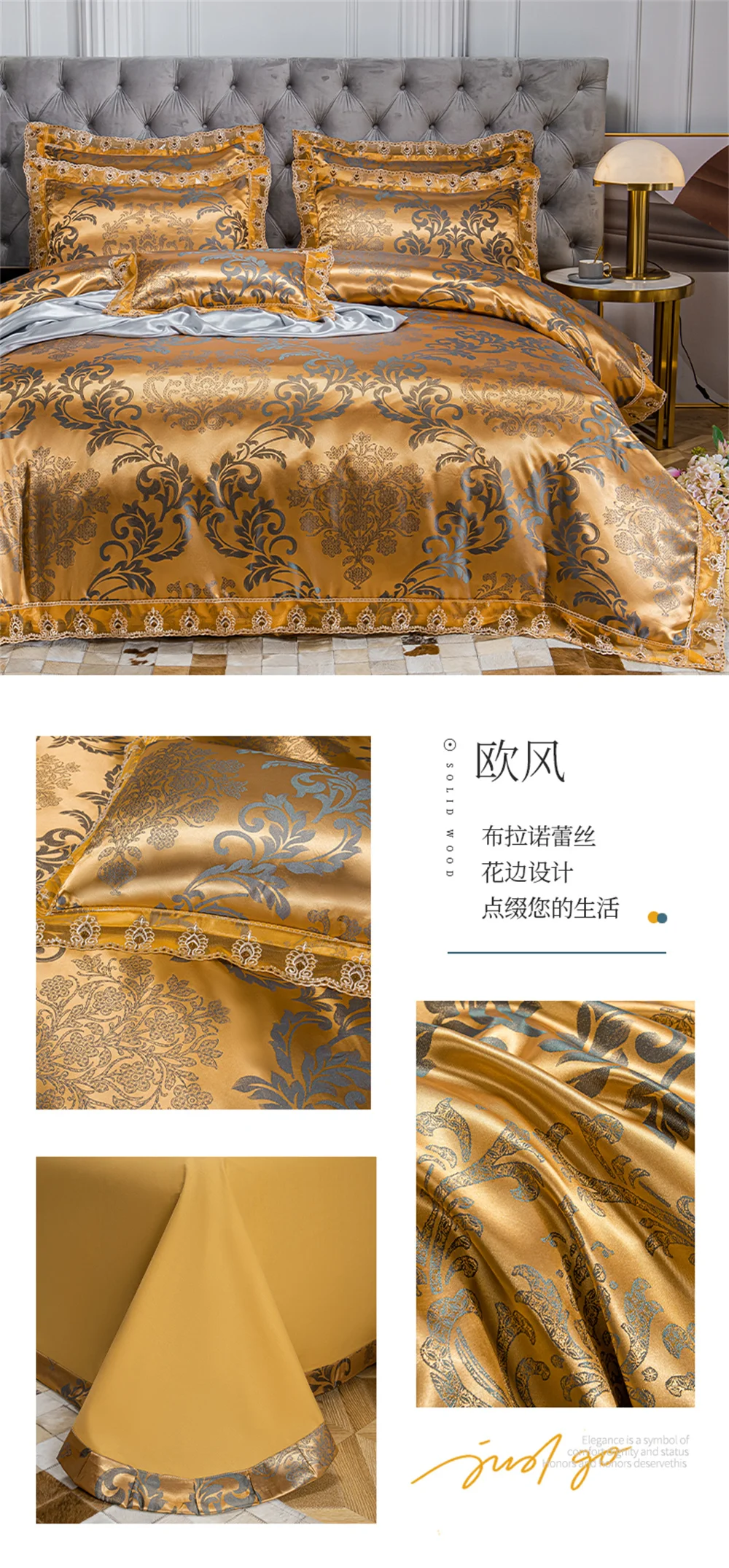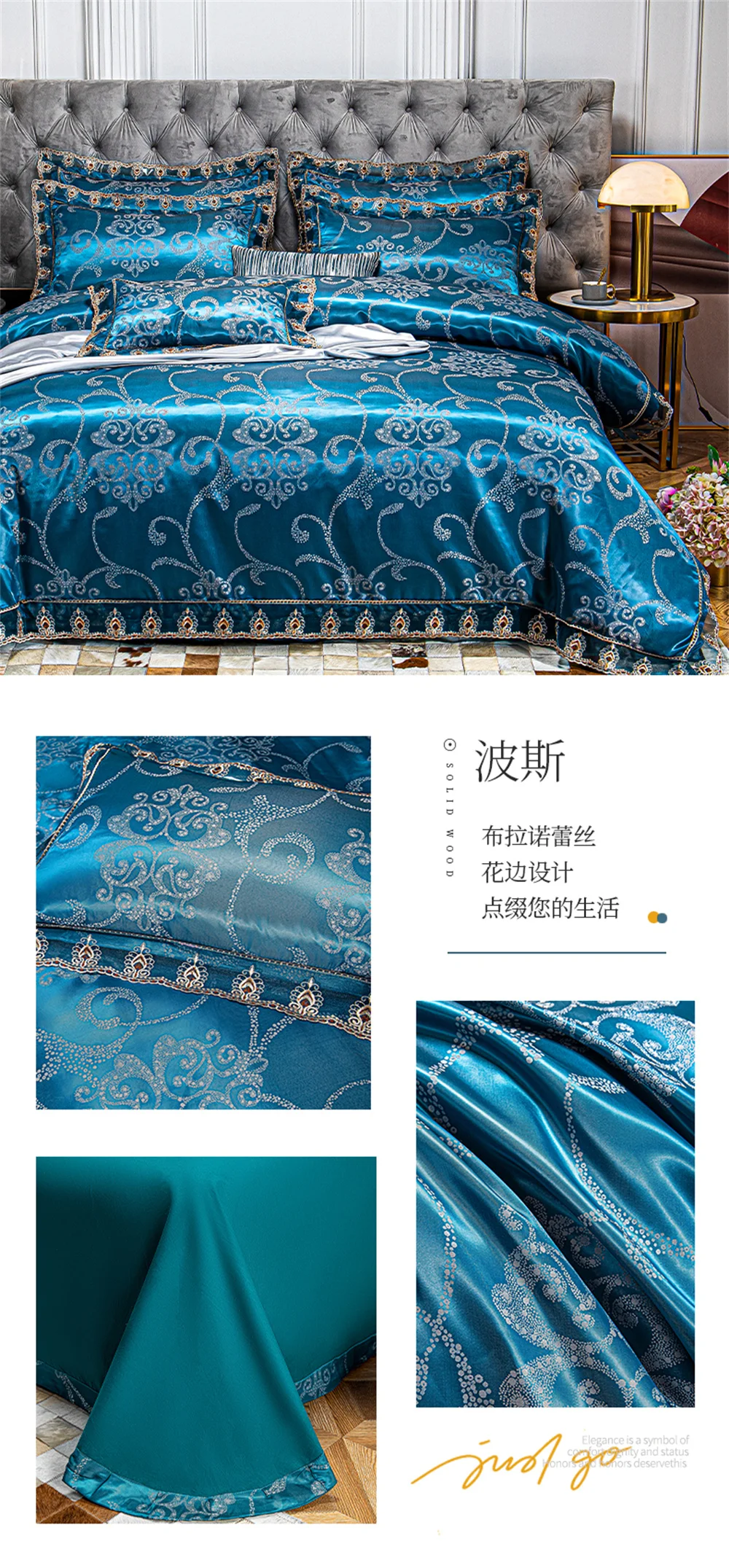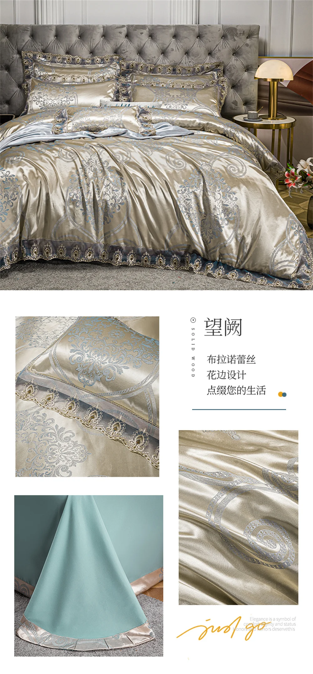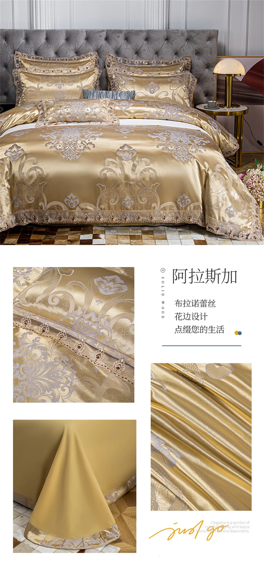 Yeknu Jacquard Weave Sateen Lace Natural Comforter Bedding Set Satin Soft Luxury Four Pieces Set Home Duvet Cover Bed Sheet Pillowcase