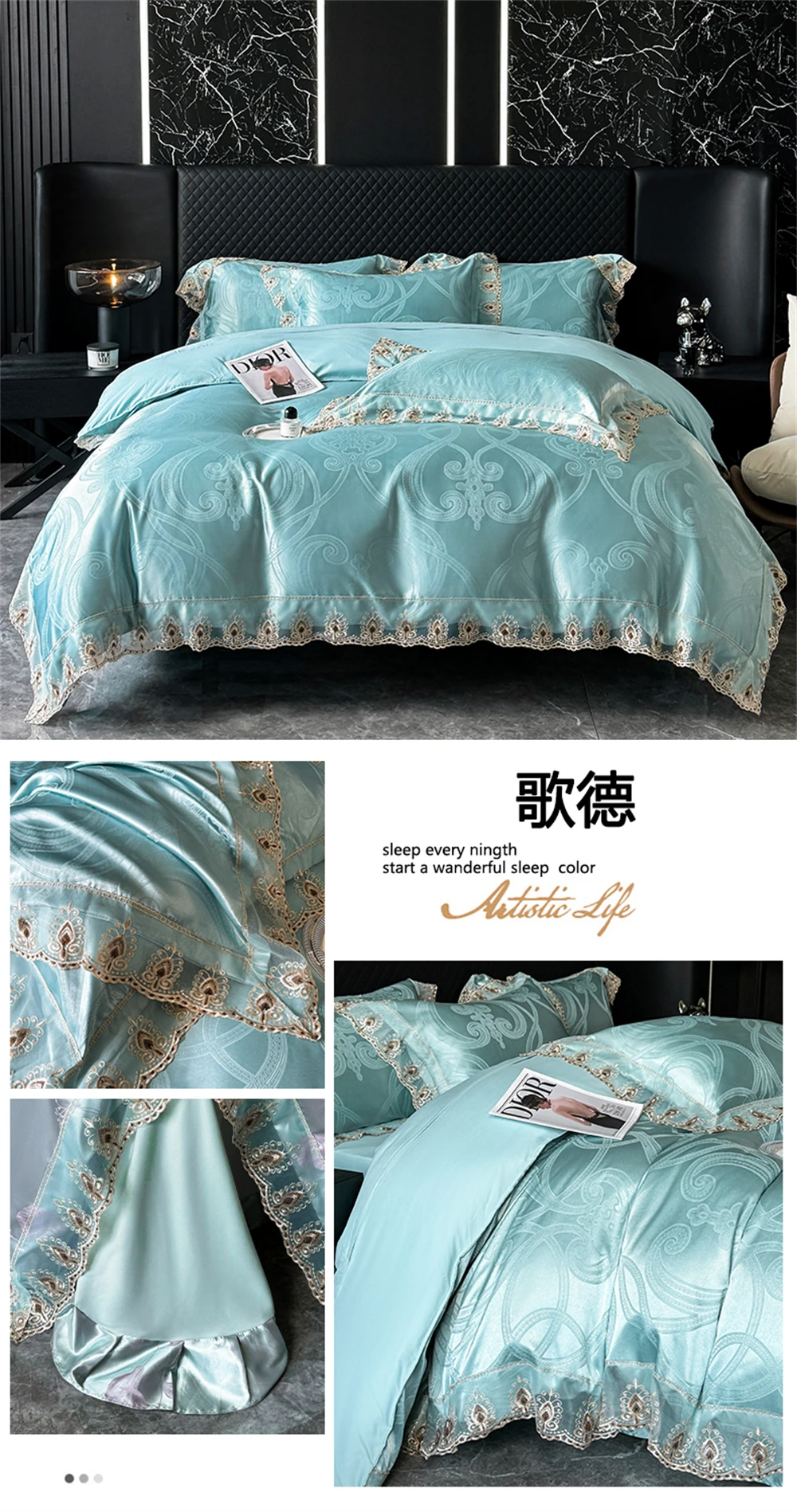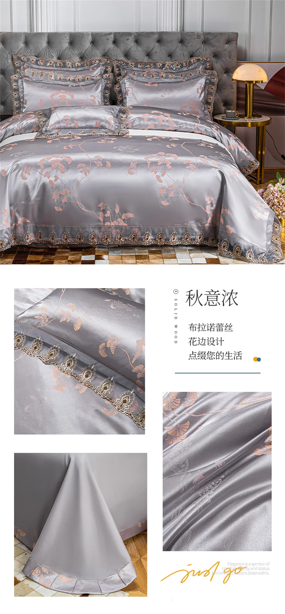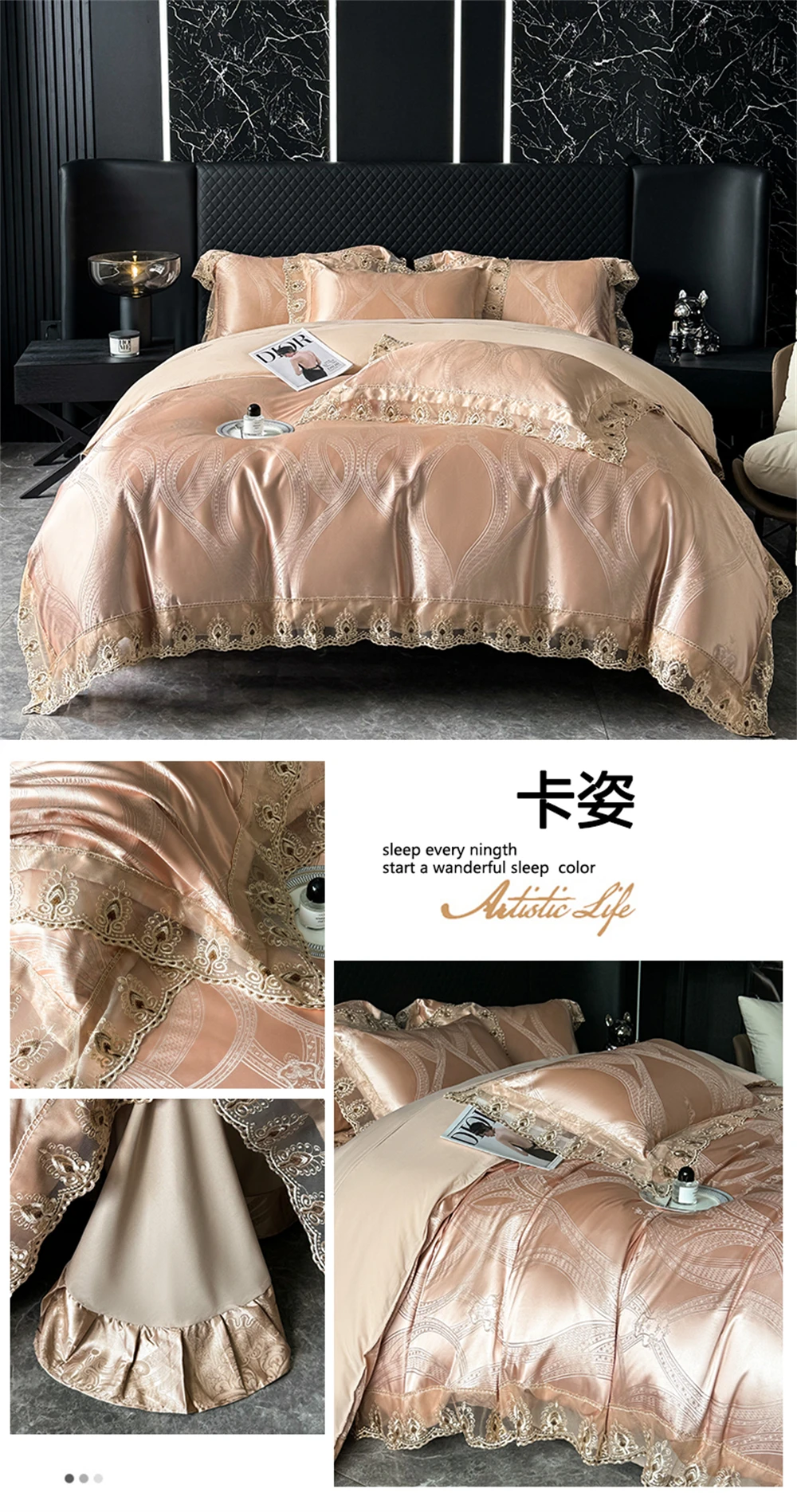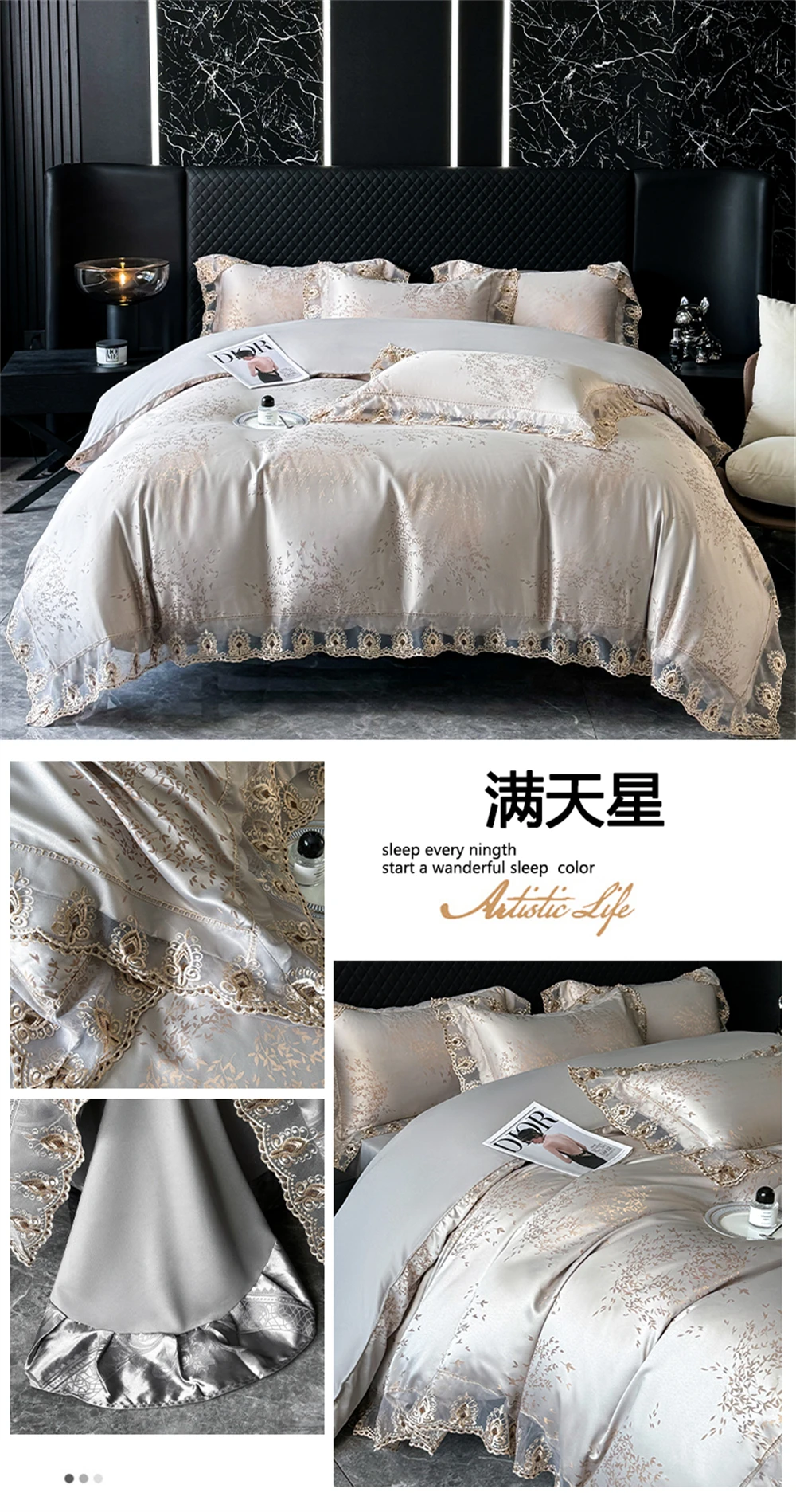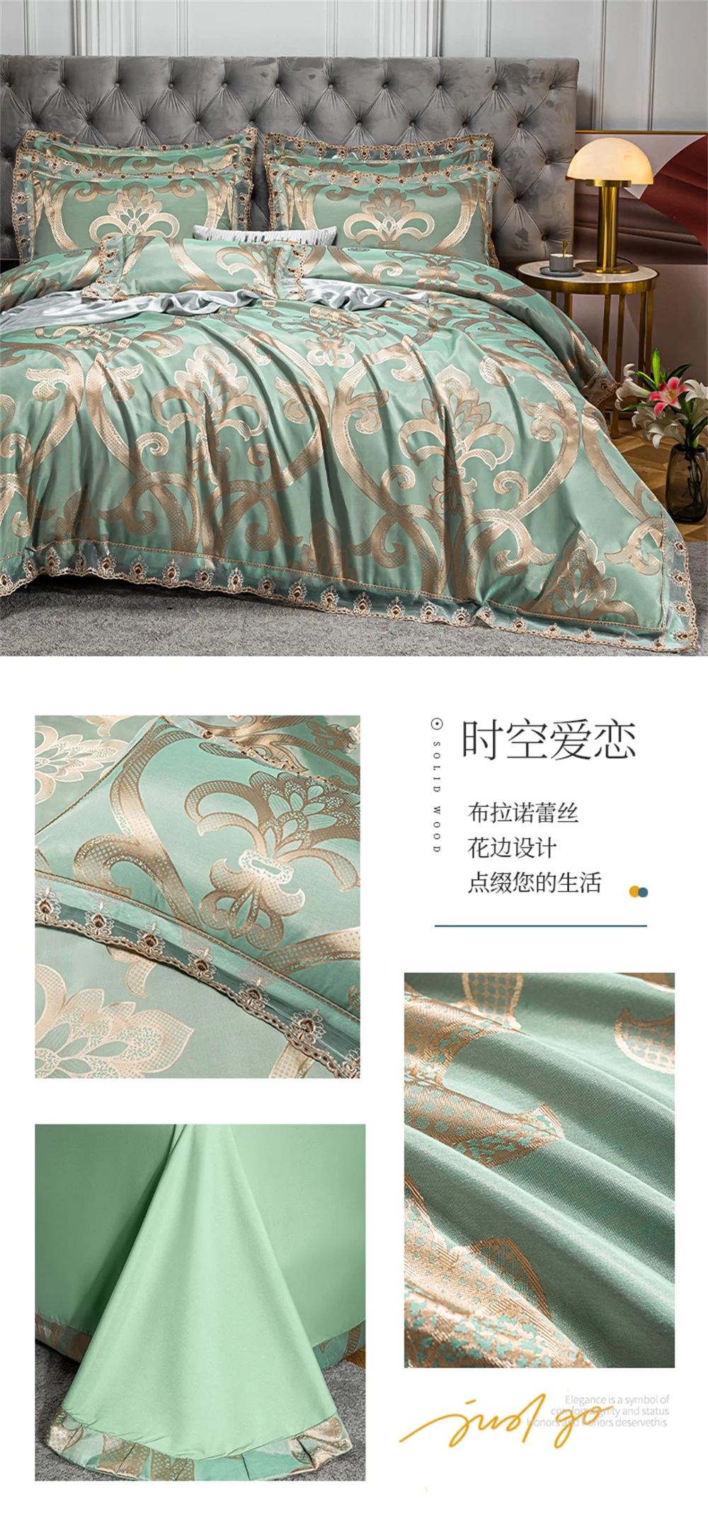 Yeknu Jacquard Weave Sateen Lace Natural Comforter Bedding Set Satin Soft Luxury Four Pieces Set Home Duvet Cover Bed Sheet Pillowcase