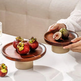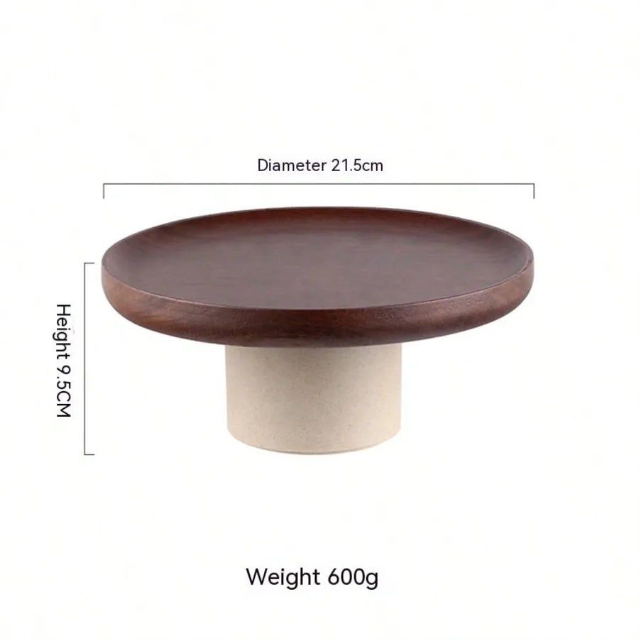 Yeknu Japanese Cake Fruit Tray Wood Egg Tray Dessert Storages Shelf Ceramic Tall Footed Snack Decorative Tray Kitchen Accessories