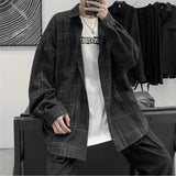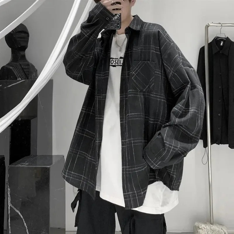 Yeknu Japanese Fashion Spring Plaid Shirt Men Long Sleeve Handsome All-match Casual Loose Summer Oversized Vintage Harajuku Shirt