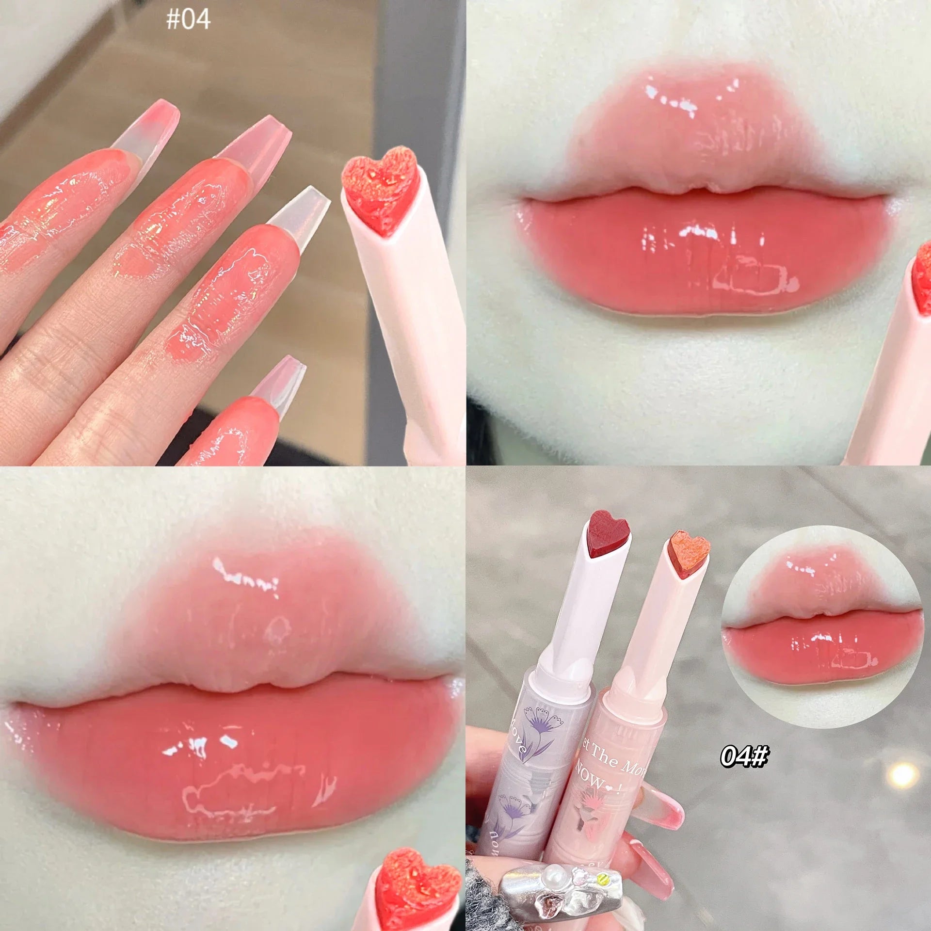 Yeknu Jelly Tint Mirror Lipstick Lip Gloss Non-stick Cup Mirror Lip Tint Heart-shaped Lipstick Moisturizing Lipgloss Long-lasting