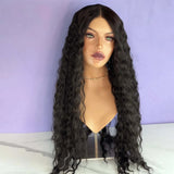 Yeknu Jet Black Wig Deep Curly Lace Wig Synthetic Hair Lace Front Wig Natural Long Black Colored Lace Frontal Wigs for Women Party