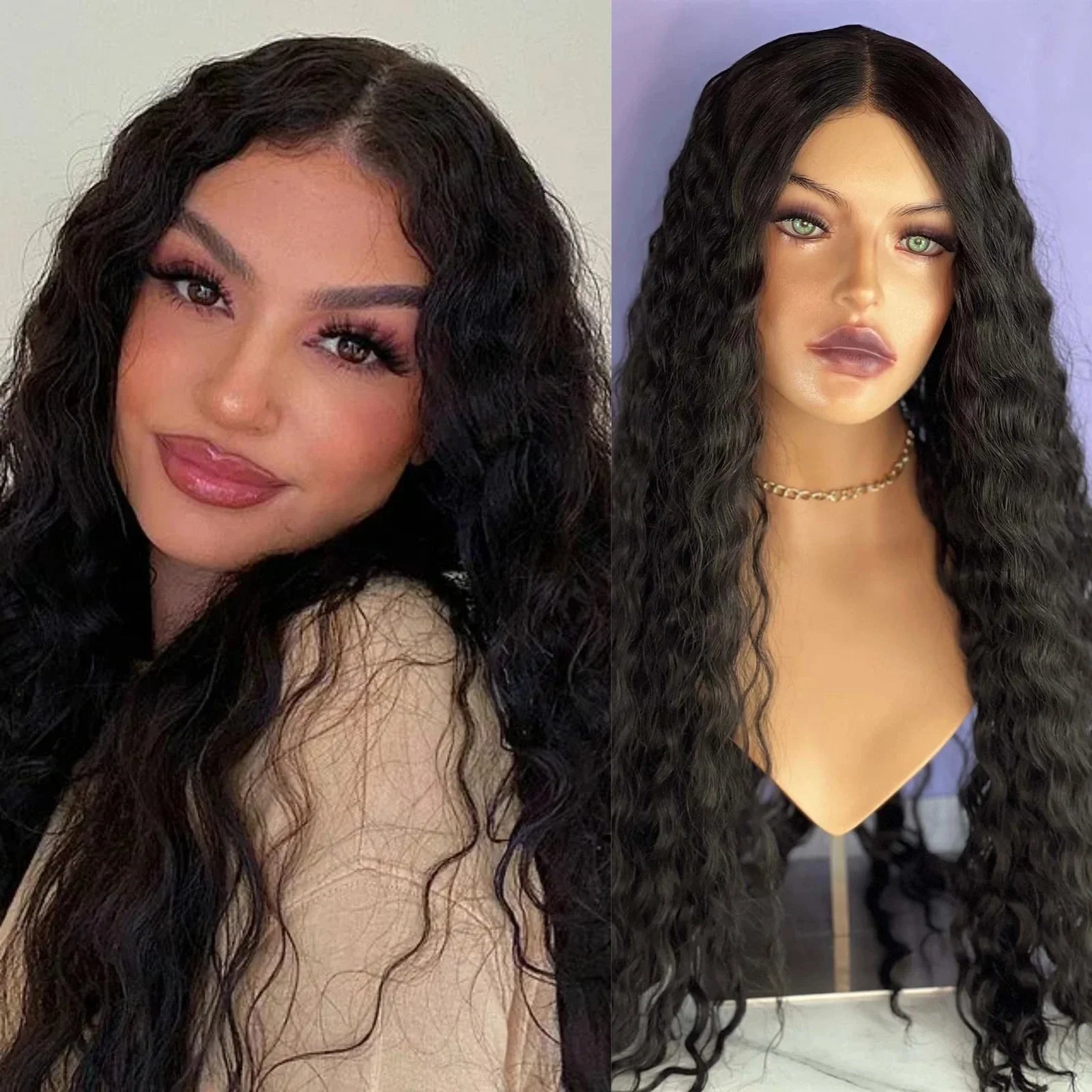 1.This Synthetic Wig High Quality Curly Lace Wig Glueless Wig Middle Part with Natural Hairline, Looks More Realistic and Ready to Wear.