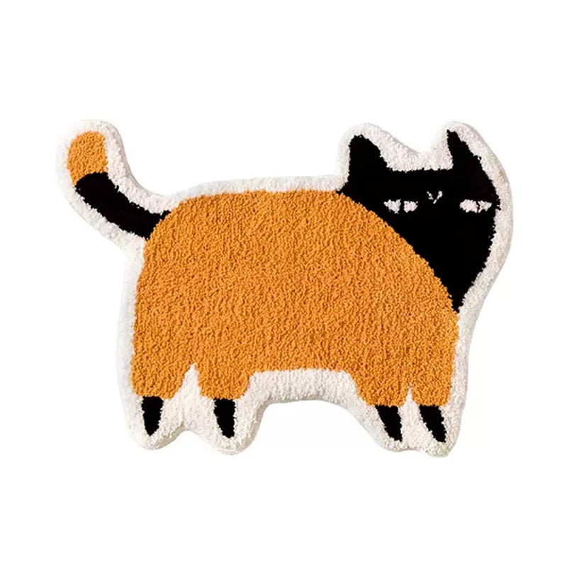 Yeknu Kawaii Tufting Cat Bathroom Mat Soft Cartoon Kids Room Pad Living Area Carpet Anti-slip Hallway Rug Home Nursery Decor 53x70cm