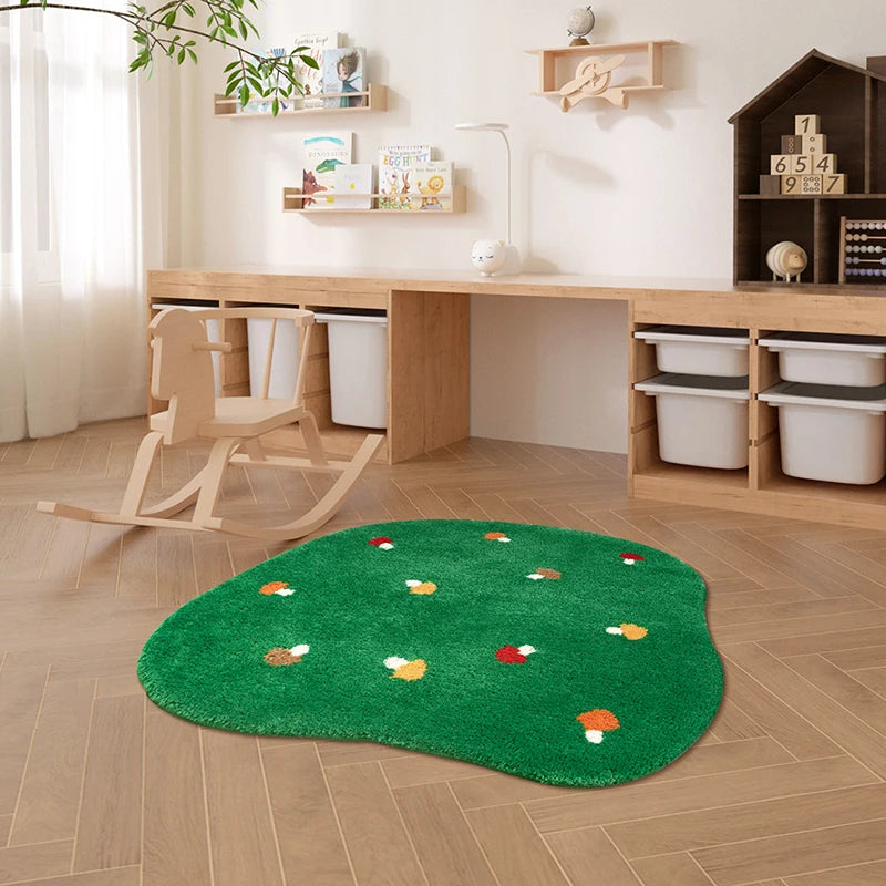 Kawaii Tufting Mushroom Forest Rug Living Room Carpet Green Mat Fluffy Children Bedroom Crib Side Floor Pad Home Nursery Decor