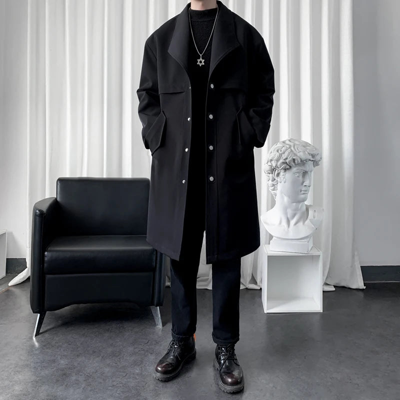 Yeknu Khaki/Black New Autumn Trench Men's Fashion Overcoat for Male Long Windbreaker Korean Streetwear Men Quality Outerwear Clothing