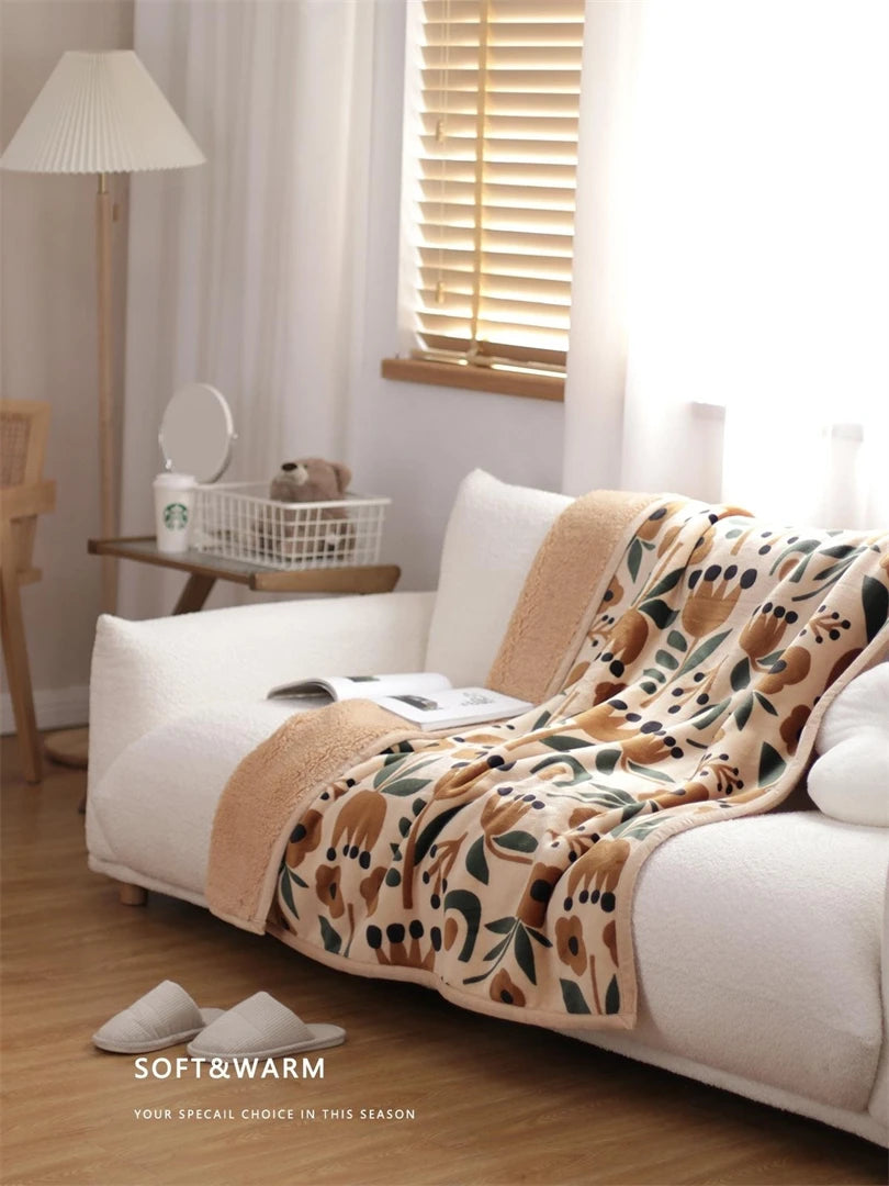 Yeknu Korean Ins Tannic Acid Comfortable Single Blanket Winter Thickened Sofa Shawl Blanket Office Flannel Lunch Break Blanket
