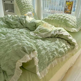 Yeknu Korean Princess Bedding Set Duvet Cover Ins Style Wash Cotton Solid Color Summer Soft Bed Sheet Set Comforter Set Quilt Cover