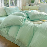 Yeknu Korean Princess Seersucker Bedding Set Duvet Cover Flat Sheets Pillowcase Bed Sheet Set Soft Comforter Cover Bed Linens Set