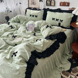 Yeknu Korean Princess Style Kawaii Girl Black Bow Bedding Set Skin-friendly Soft Duvet Cover Set Bed Sheet Or Bed Skirt Pillowcases