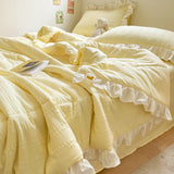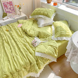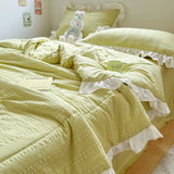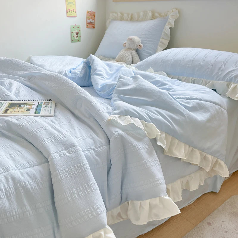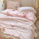 Yeknu Korean Princess Style Summer Cool Quilt Comforter Soft Seersucker Lace Ruffles Summer Thin Quilt Blanket Machine Washable