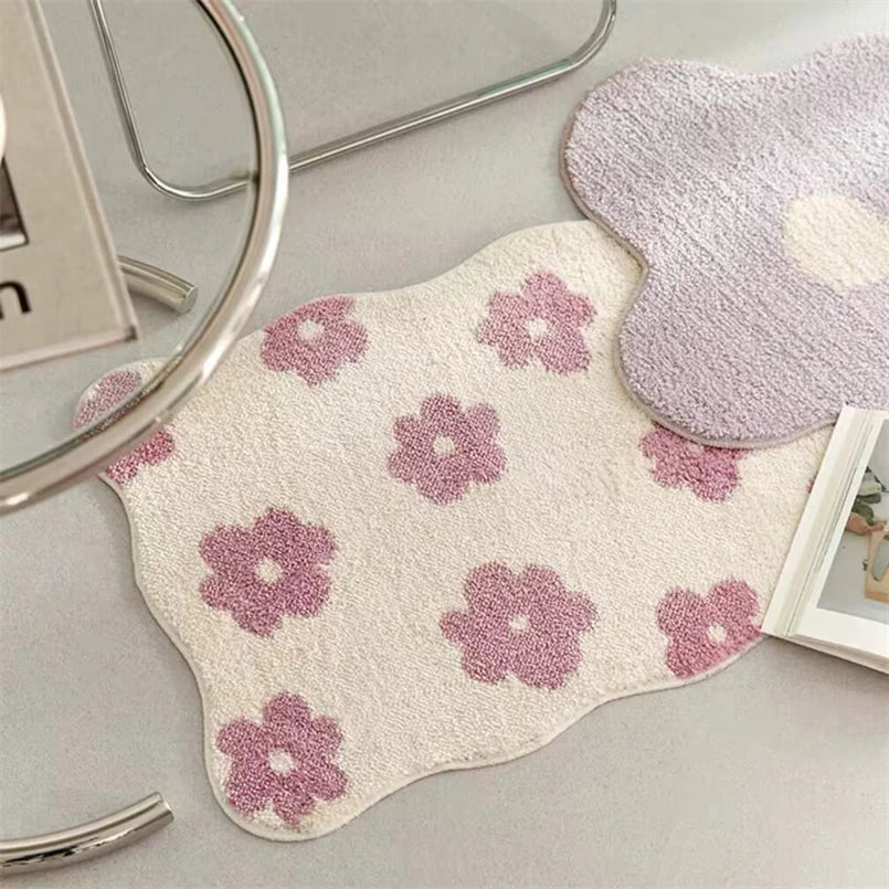 Yeknu Korean Style Ins Style Floret Flocking Carpet Modern Simple Bedroom Bedside Blanket Bathroom Absorbent Non-Slip Foot Mat