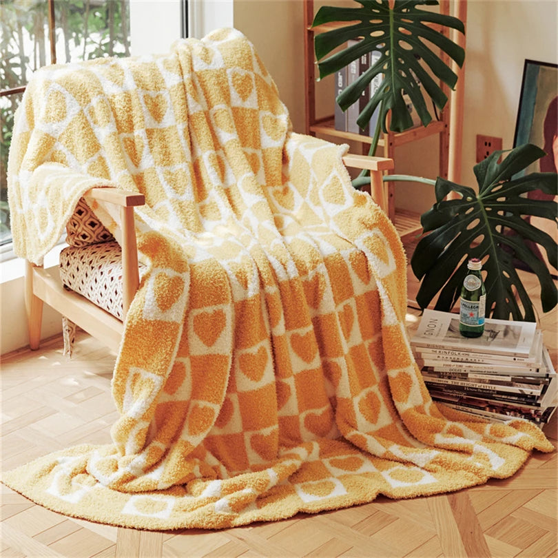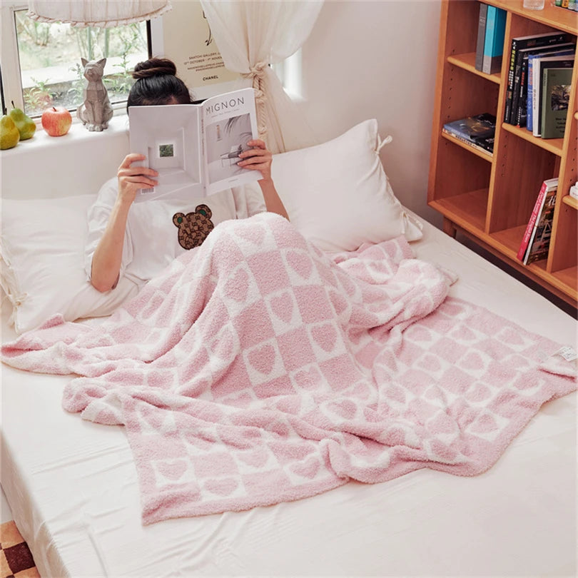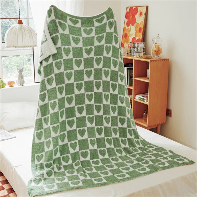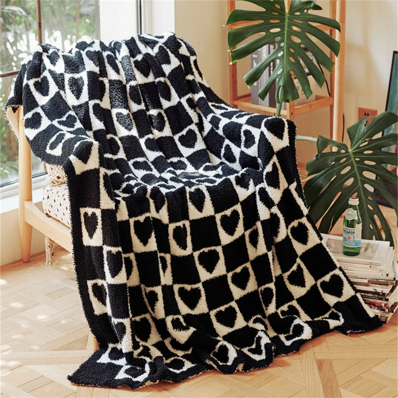 Yeknu Korean-style Simple Love Large Checkerboard Half Velvet Knitted Blanket Multi-functional Sofa Cover Blanket Soft Matching Blanke