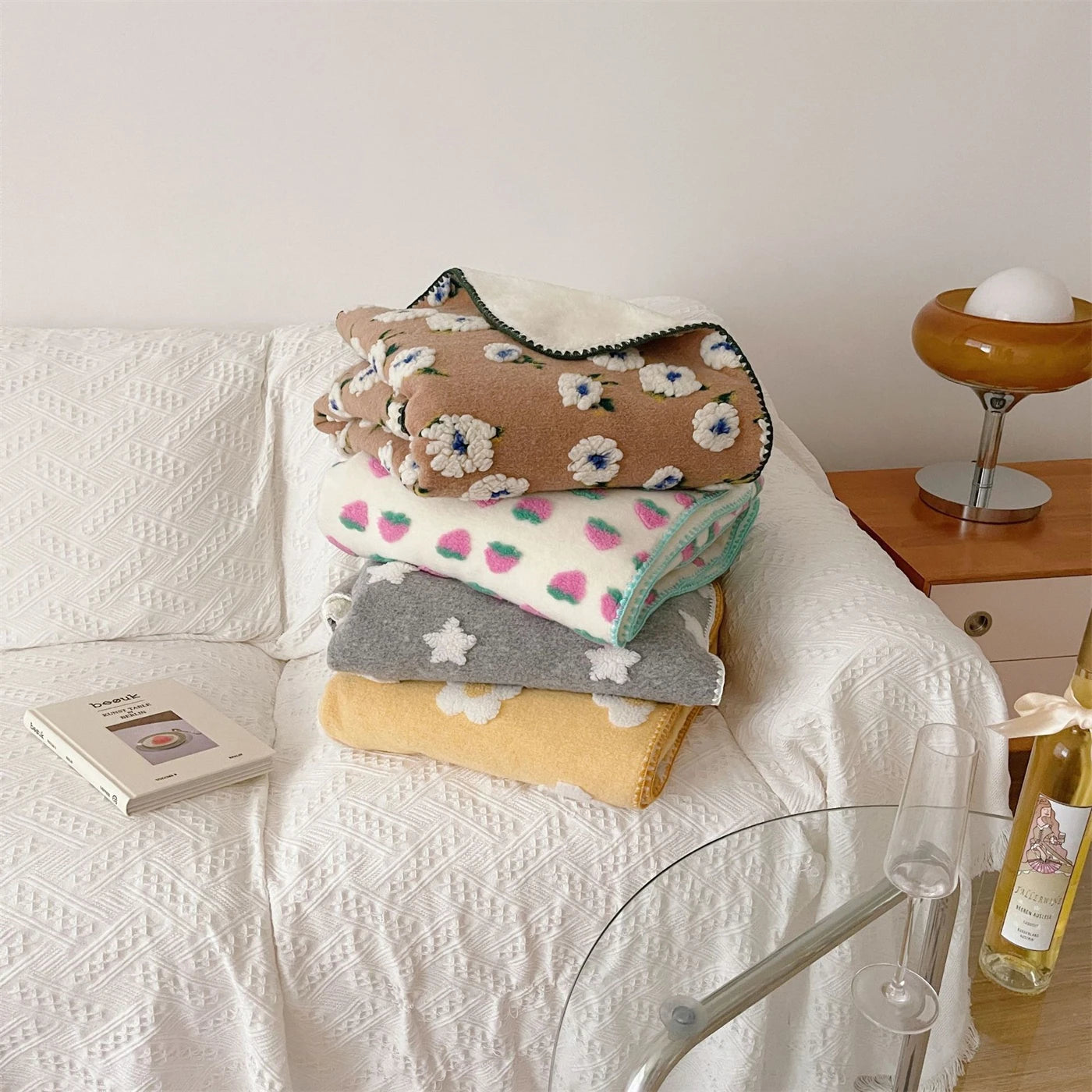 Yeknu Korean Style Thickened Lamb Fleece Jacquard Small Blanket Kindergarten Cartoon Soft Nap Blanket Home Leisure Sofa Blanket