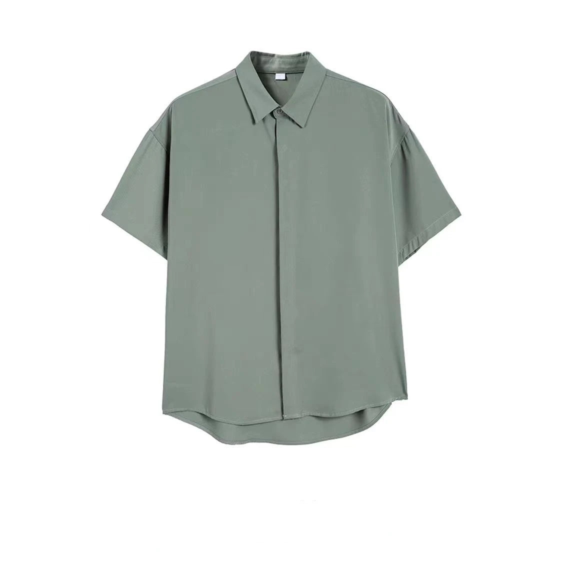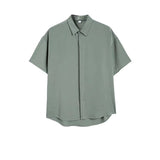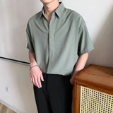 Yeknu Korean Version Short Sleeve Shirts for Men Thin Ice Silk Summer No-iron High-end Drape Loose Business Casual Solid Color Shirt