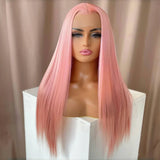 Yeknu Lace Front Wigs for Women Synthetic Pastel Pink Hair Wig Long Silky Straight Natural Wigs 13X4 Frontal Party Colored Wig Cosplay