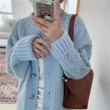 Yeknu Ladies Sweaters Winter Button Round O Neck Knitted Top for Women Purple Cardigan Korean Fashion Crochet Warm Autumn Style