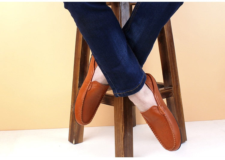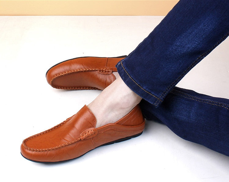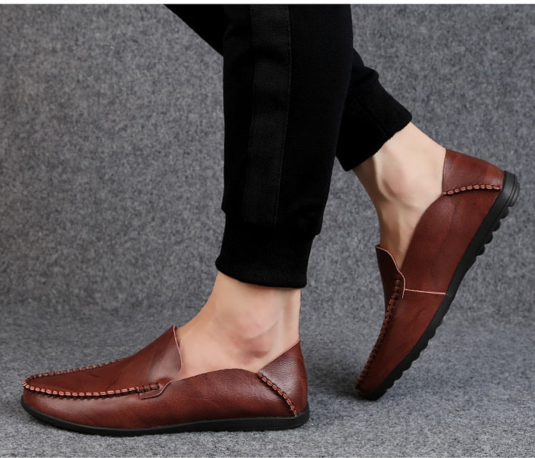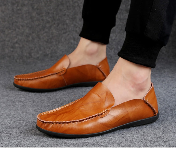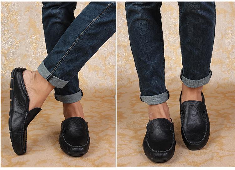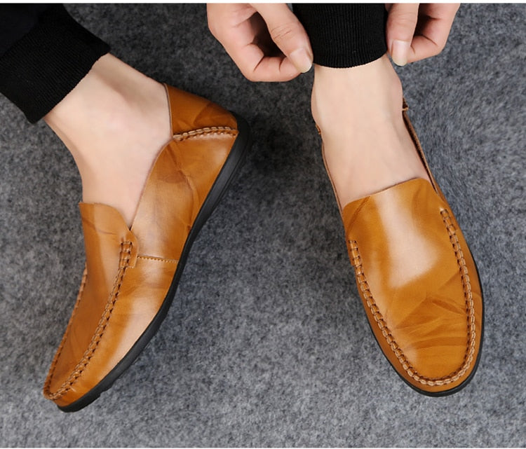 Yeknu Leather Men Shoes Luxury Trendy Casual Slip on Formal Loafers Men Moccasins Italian Black Male Driving Shoes Sneakers