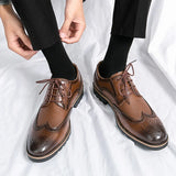 Yeknu Leisure Retro Bullock Design Men Classic Business Formal Shoes Pointed Toe Carving Leather Shoes Men Office Oxford Dress Shoes