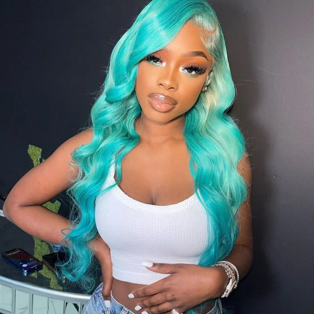 Yeknu Light Blue Blonde Wavy Synthetic Hair Wigs for Black Women 26Inches Silky Straight Soft Lace Front Wigs Cosplay Daily Wear