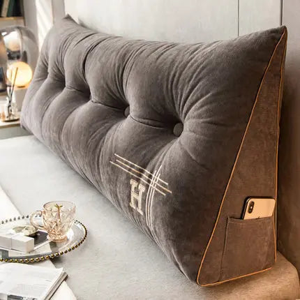 Yeknu Light luxury velvet triangular bedside cushion, tatami bed cushion, embroidered large backrest, cross-border distribution