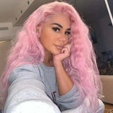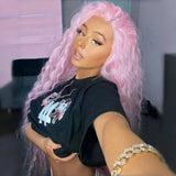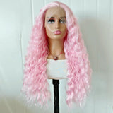 Yeknu Light Pink Wig Deep Curly Synthetic Lace Front Wig Glueless Frontal Pastel Long Pink Hair Lace Wigs for Women Party Cosplay