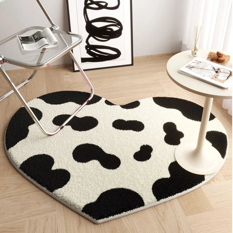 Yeknu Living Room Carpet Fashion Minimalism Cute Peach Heart Printed Special-shaped Plush Rug IG Home Decoration Fluffy Bedroom Mat