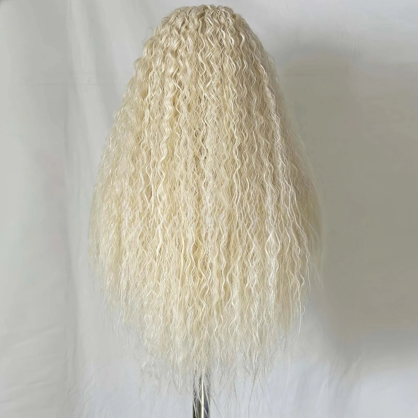 Yeknu Long Blonde Curly Wigs for Women Synthetic Lace Front Wig Free Part Platinum Blonde Curly 13X4 Blonde Deep Wave Daily Party Wigs