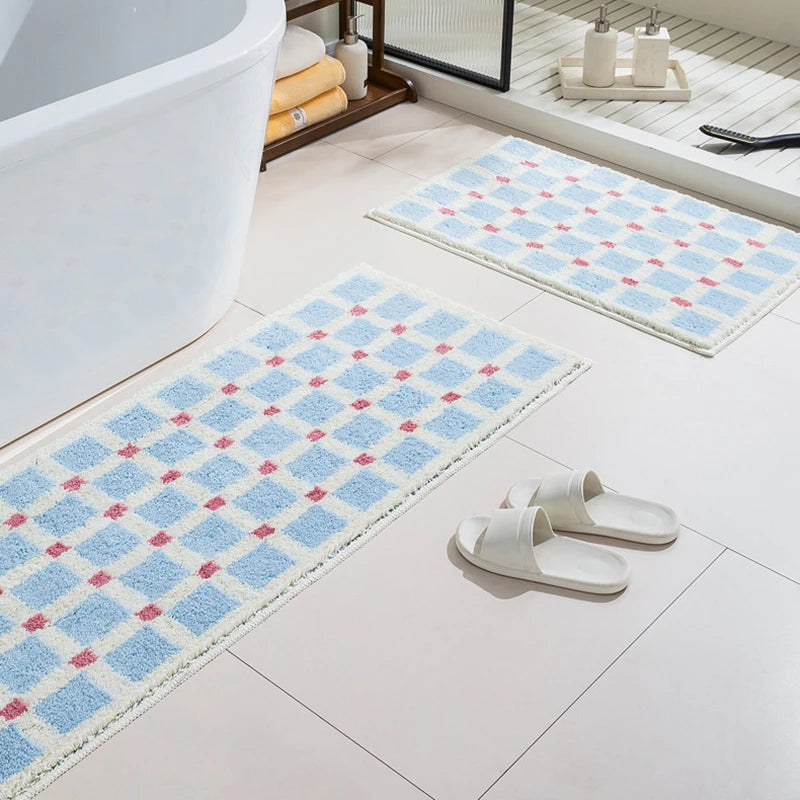 Long Tufting Grids Bathroom Mat Living Room Carpet Bathmat Bedroom Bedside Rug Soft Floor Pad Aesthetic Home Decor
