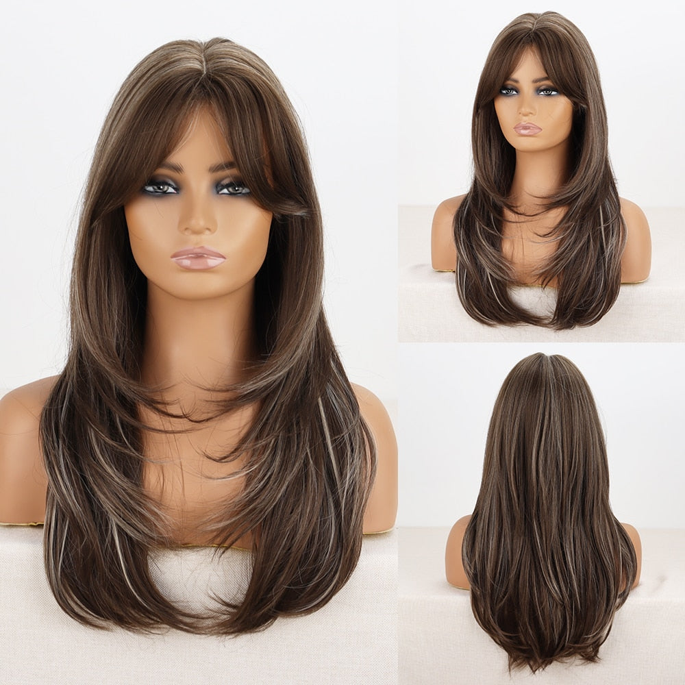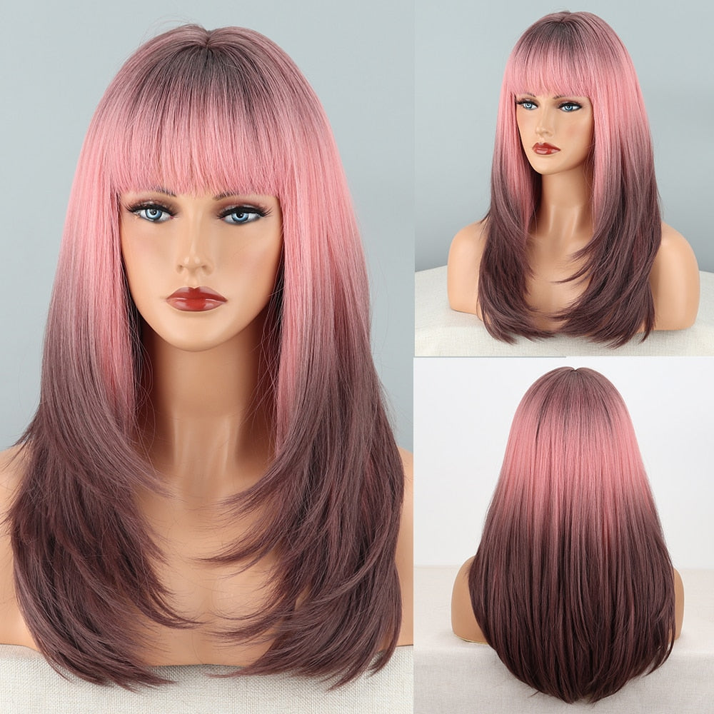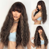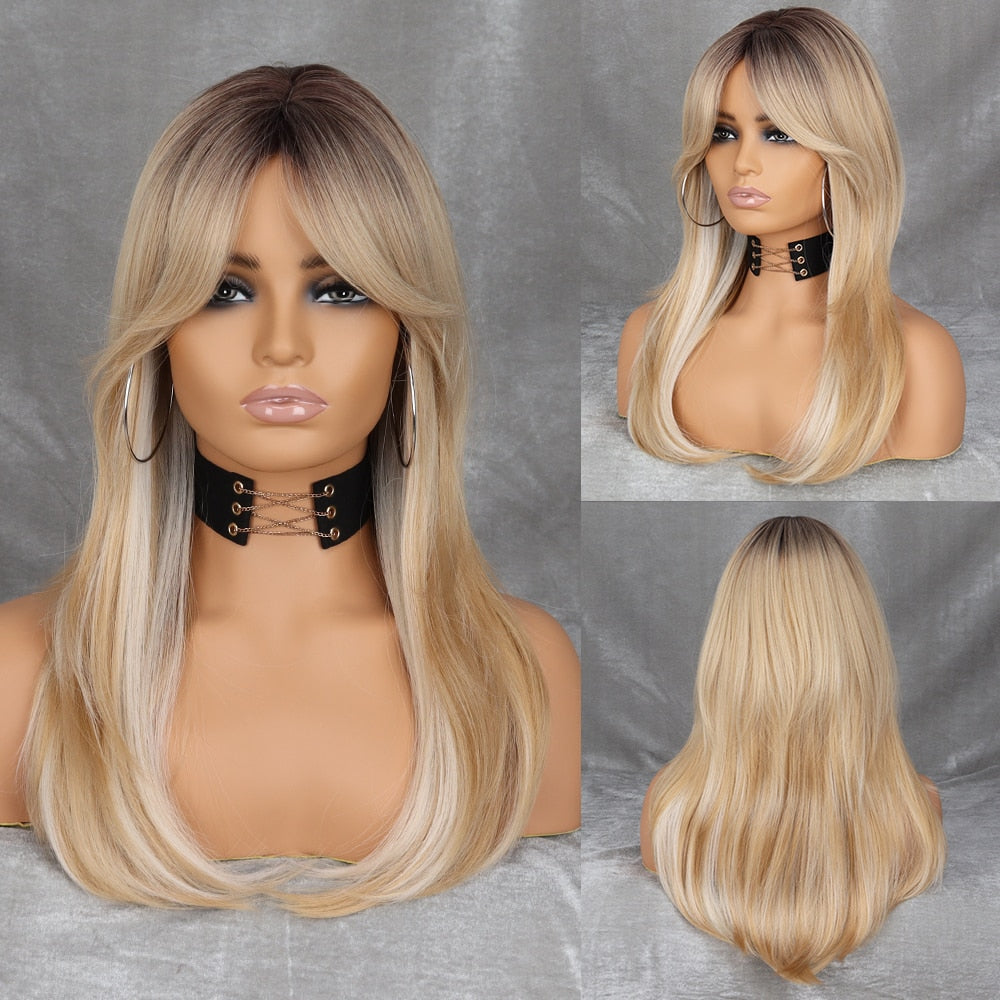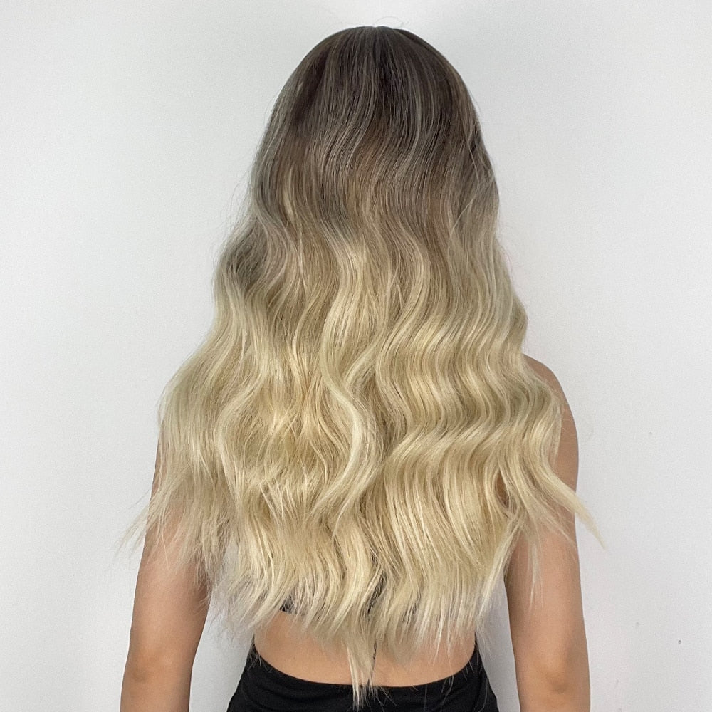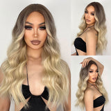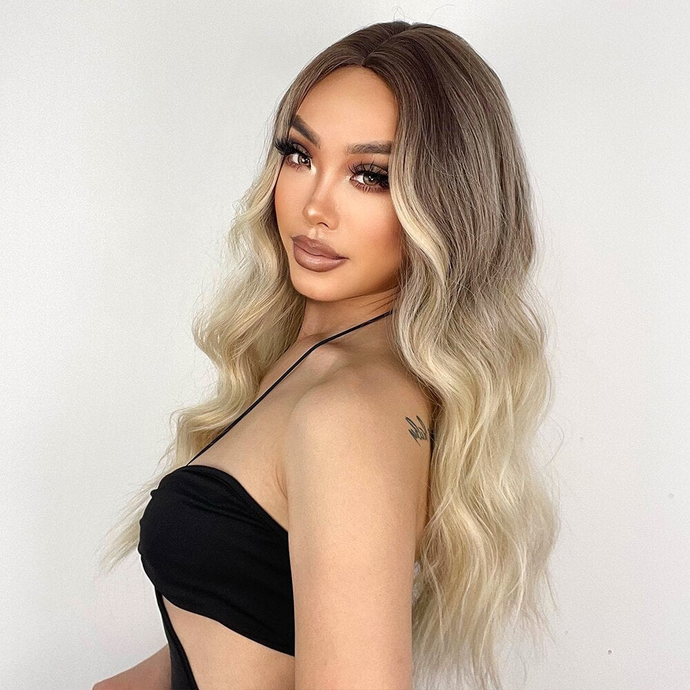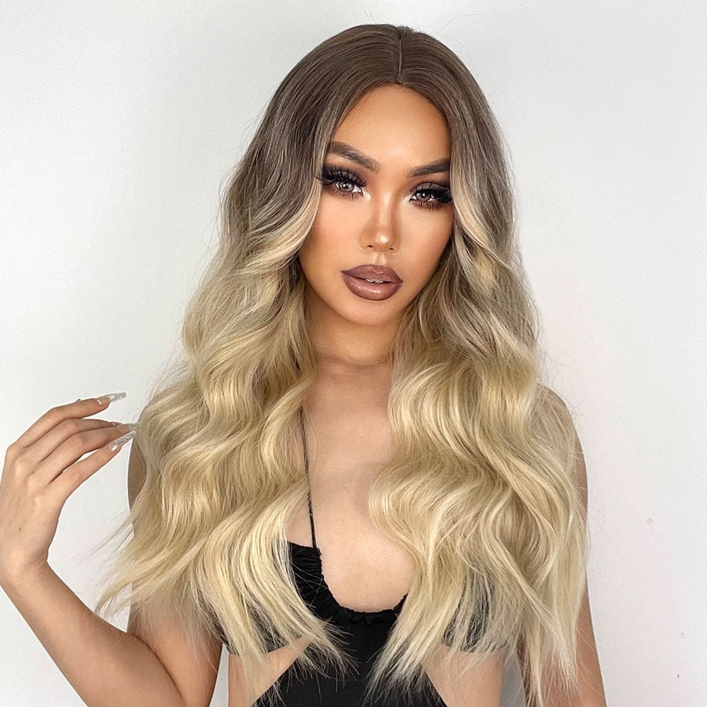 Yeknu Long Wavy Ombre Light Blonde Platinum Middle Part Hair Wig Cosplay Natural Heat Resistant Synthetic Wig For Women
