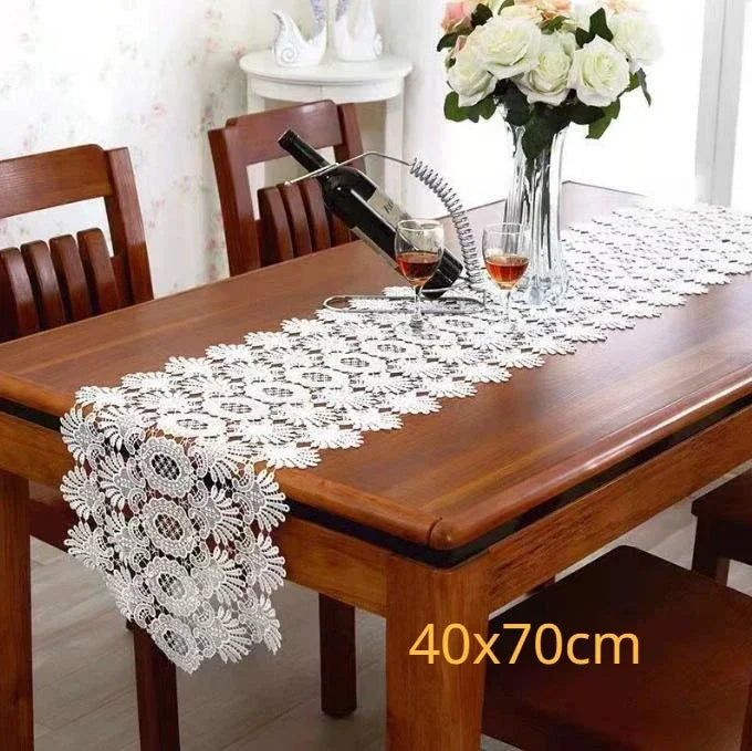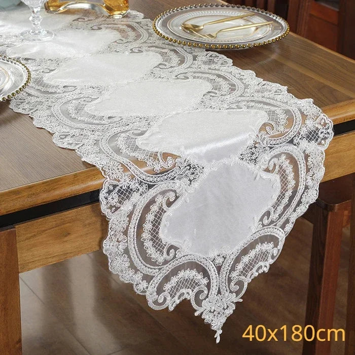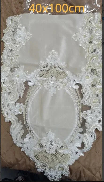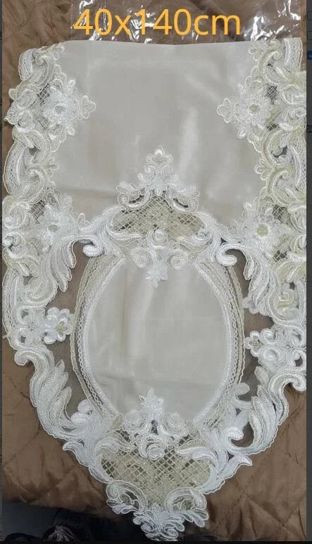 Yeknu Low Price Promotion Luxury Lace Table Runner Tablecloth TV Cabinet Cover Cloth Embroidered Coffee Table Flag Wedding Decor White